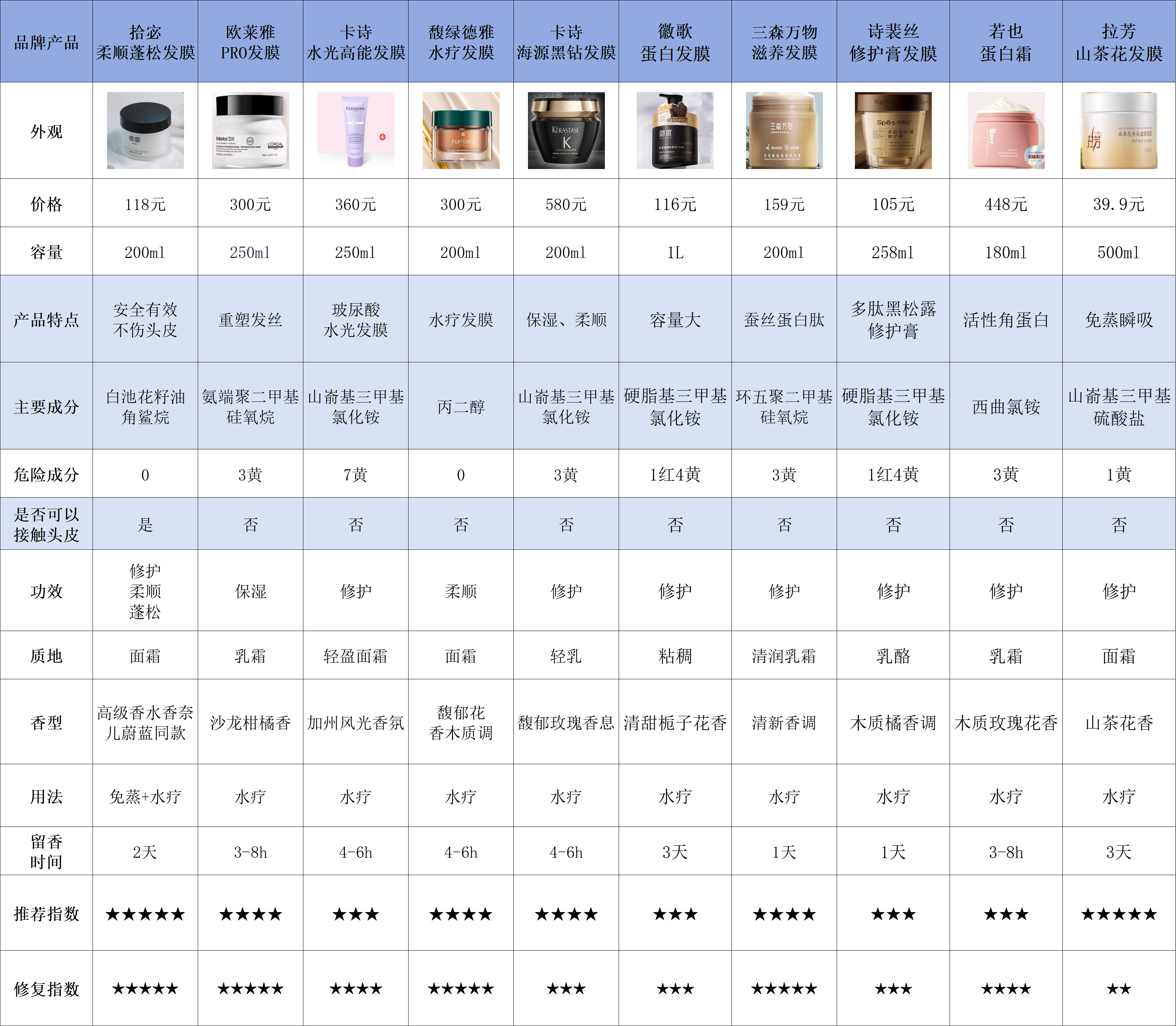 看完上面的选购技巧,你现在能理清怎么选发膜了吗?为了让大家更直观对比,我把几款实测过的发膜核心表现整理成表格了,涵盖使用感受、持久度这些实际体验点,希望这些真实体会能帮你少踩点坑。