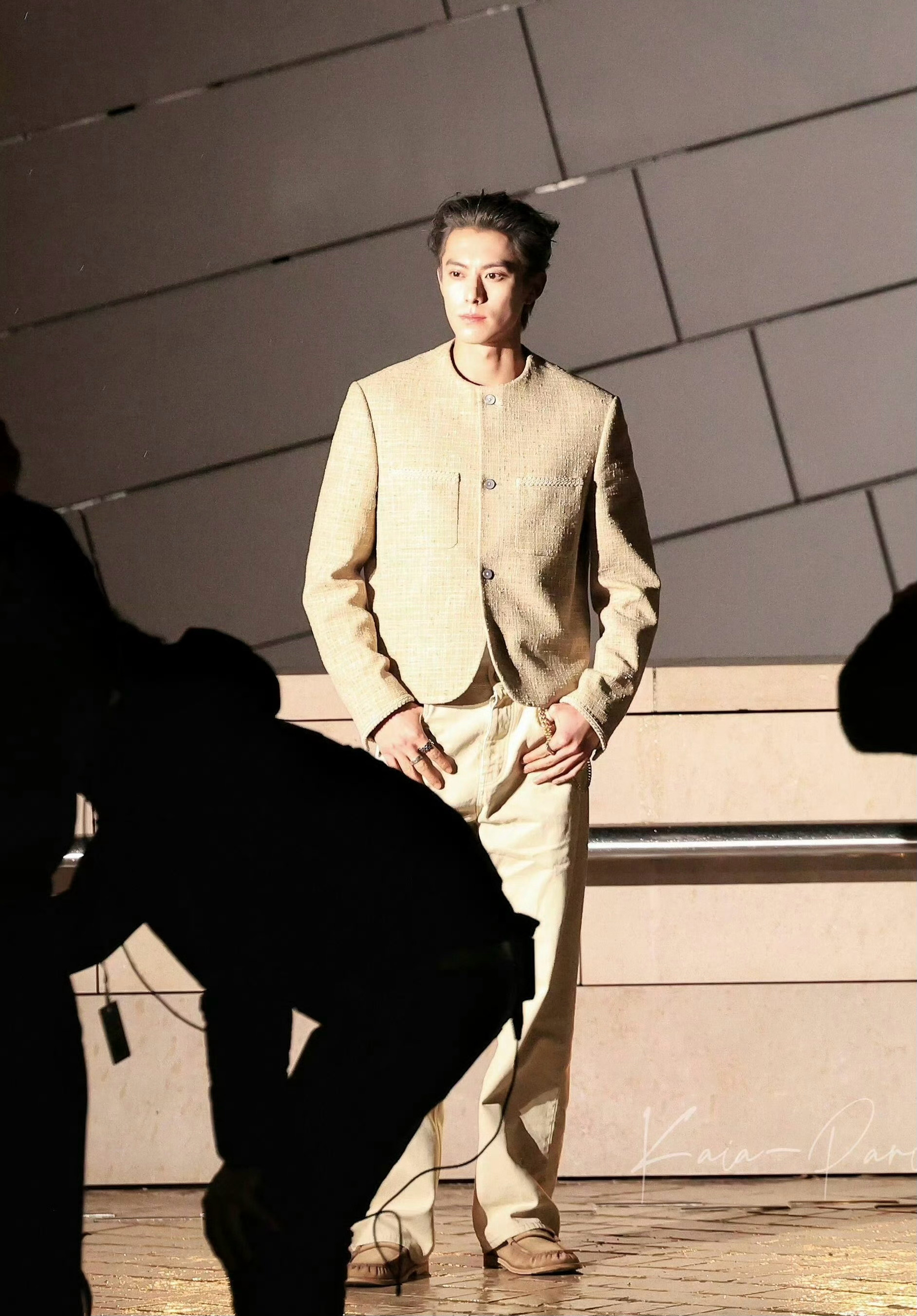 王鹤棣|路易威登2026秋冬男装秀看秀造型出图,身穿2026早秋男士系列米色套装