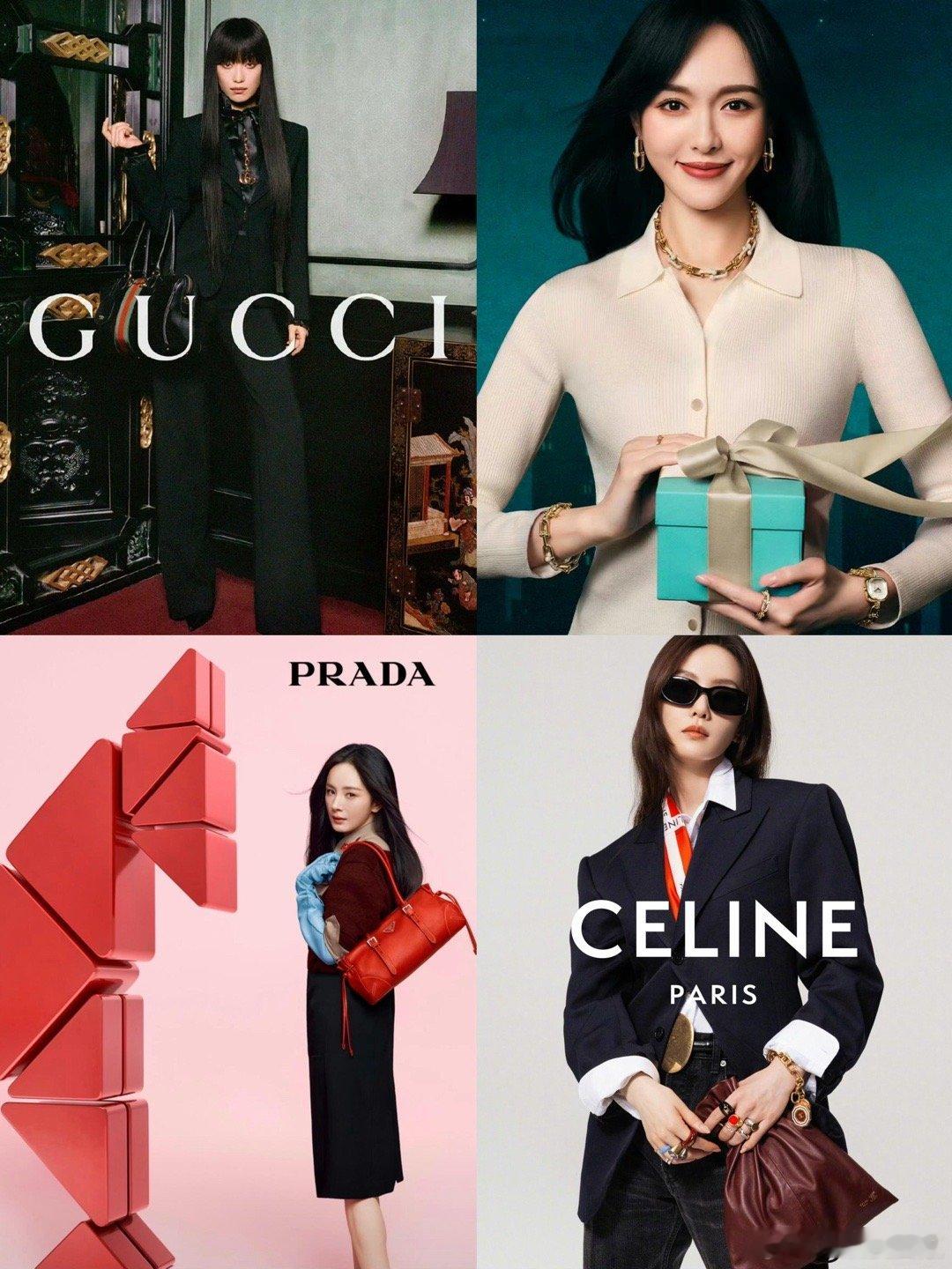 85花的奢牌新年广告Gucci品牌代言人倪妮、Celine全球品牌大使刘诗诗、Prada代言人杨幂、Tiffany品牌大使唐嫣