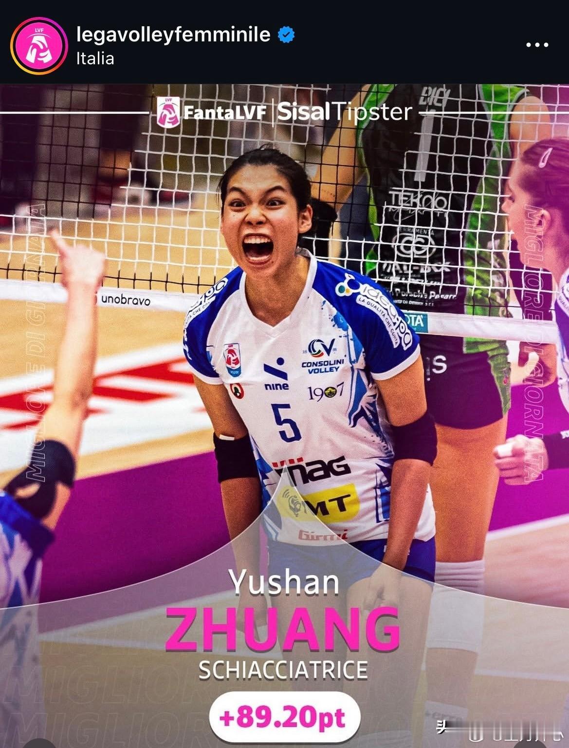 25-26赛季意甲女排联赛常规赛第21轮结束之后,庄宇珊的一传完美率(接发超100次)继续列所有主攻的第1位。加油! 🔹1. 庄宇珊 ➠ 一传完美率38.6%(334次,30失误) 🔹2. 石川真佑 ➠ 一传完美率38.4%(292次,24失误) 🔹3. 加比.吉马良斯 ➠ 一传完美率38.2%(293次,19失误) 🔹4. 盖亚.乔瓦尼尼 ➠ 一传完美率35.7%(389次,32失误) 🔹5. 莉娜.阿尔斯麦尔 ➠ 一传完美率35.2%(512次,47失误)