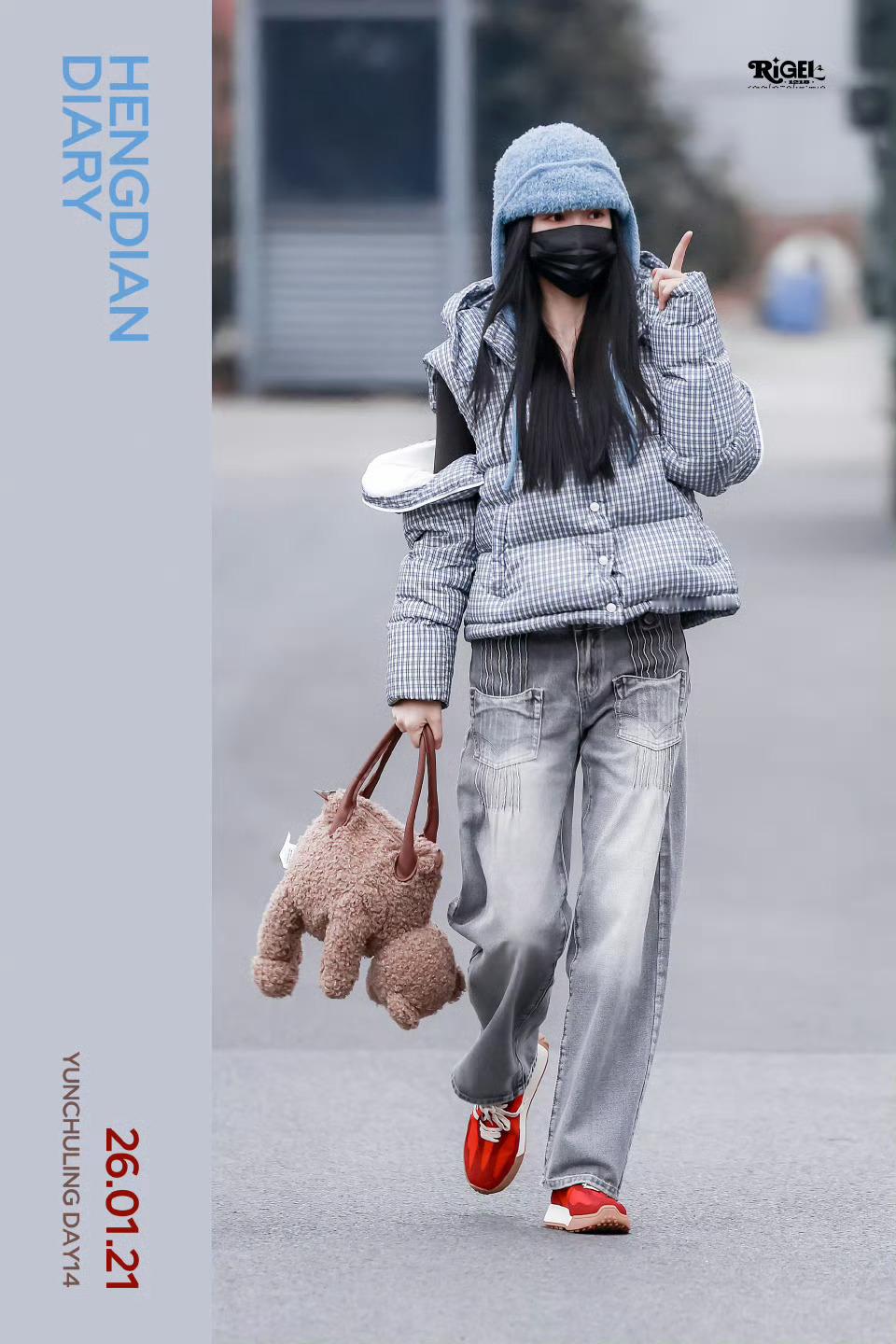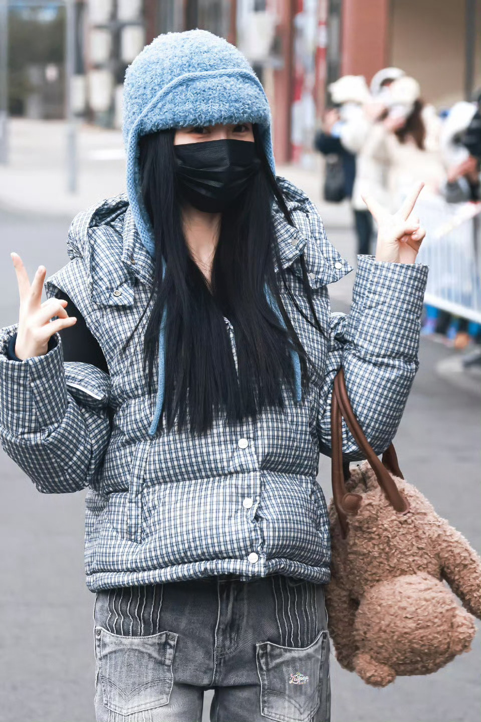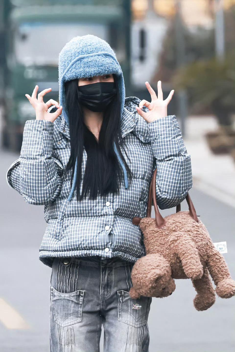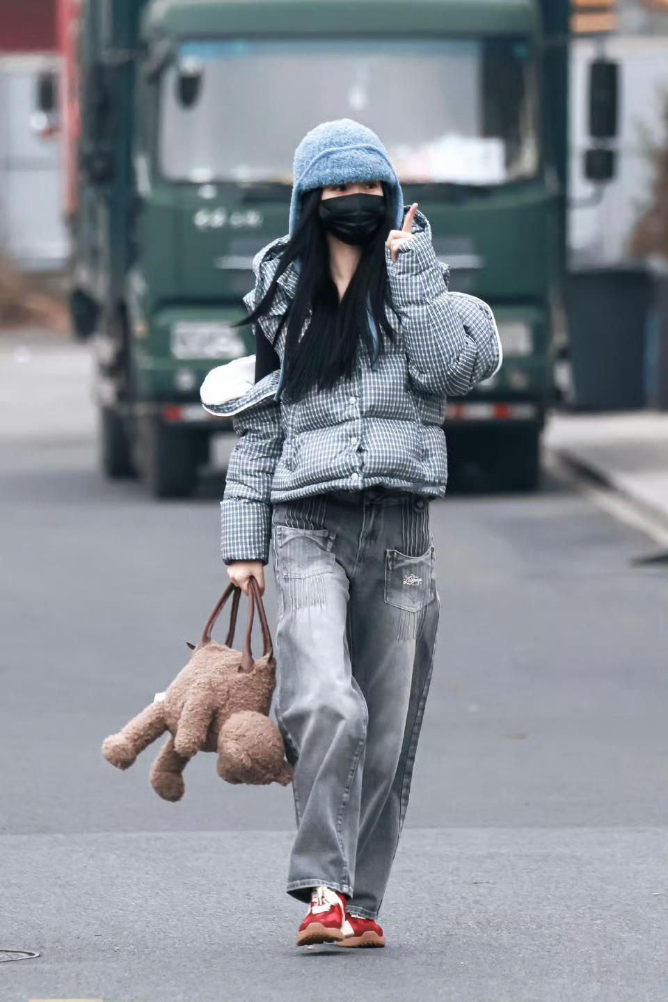 虞书欣格纹羽绒服灰色牛仔裤look虞书欣温暖系穿搭 虞书欣温暖系穿搭,是格纹羽绒