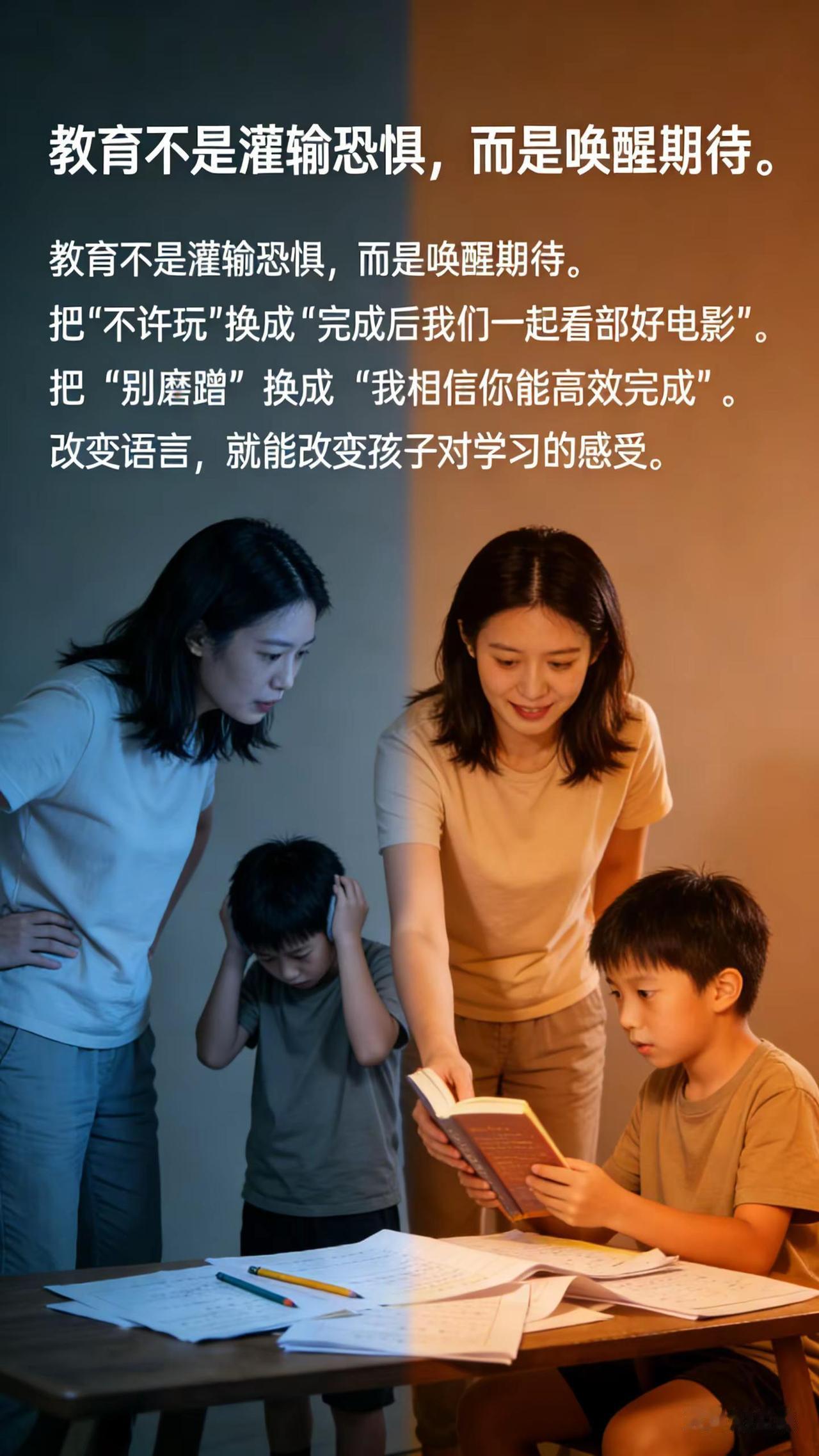 别再瞎折腾!这种“教育”正把孩子往坑里推。家人们,哈佛研究提到的 “反安慰效应”,正悄悄影响我们教育孩子的方式。不少家长觉得 “作业没写完,别想碰手机” 这类做法是立规矩,实则大错特错,这是不懂教育瞎折腾🙅‍♀️我家就是典型反例😭 儿子三年级前问题多多,顶嘴、摔东西、遇事逃避、考差怪题难。我们严厉管教,他却愈发抵制,架子鼓班半途而废,写作业磨蹭,成绩垫底。我满心困惑,一心为他好,咋就养出不爱学习的娃🧐 为解决问题,我查阅大量教育书籍,还找浙大儿童心理学教授求助。教授指出,这就是反安慰效应在作祟🤯 当孩子从权威的家长处接收负面暗示并深信,身心就会配合,将假象变痛苦。在教育中,家长常不自觉给孩子负面暗示。比如 “作业没写完不许玩手机”,看似立规矩,却暗示学习痛苦、玩乐诱人。“别磨蹭,认真点”,实则暗示孩子做不好细节。孩子听多了,就把暗示当真,你说他贪玩,他便视学习为苦差;说他磨蹭,他就越催越慢😣 我这才明白,儿子厌学并非叛逆,是我那些暗示式唠叨造成的。那如何打破这循环?教授说,孩子自律靠引导,而非逼迫。孩子贪玩正常,关键是把爱玩动力转到学习,将否定换成期待💖 下面四个亲身验证有效的方法分享给大家👇 🎬一是陪看高质量纪录片,这能重置大脑。短视频如快餐,看多了让大脑不愿思考。纪录片像正餐,可训练大脑专注,重拾被短视频切碎的注意力。🎨二是尽早挖掘孩子天赋,因材施教激发内驱力。每个孩子都有隐藏天赋,比如有的孩子虽背诗困难,但运动出色;有的坐不住,画画却能专注许久。家长可用耶鲁大学天赋测试表,一分钟判断孩子类型,针对性培养,提升效率。🎉三是帮孩子获得学习成就感。孩子抵触学习常因努力无果,产生挫败感。此时催骂只会适得其反。我们应像游戏闯关般,把作业拆成小目标,完成就贴贴纸,攒够一定数量可换家庭观影或周末游玩。注意别用零花钱奖励,避免孩子因钱学习。📖四是狠抓学习习惯。孩子写作业磨蹭并非态度问题,而是习惯未养成。麻省理工研究表明,15 岁前孩子自控力差,需家长用对方法培养习惯。但别用物质奖励哄孩子,精神奖励更能激发动力。若孩子处于 3 - 12 岁关键期,不妨试试,坚持下去,三个月收获自律娃💪育儿经验分享 新手爸妈必看 反安慰效应 教育孩子 孩子自立 🤔互动问题:你平时有没有给孩子一些无意间的负面暗示呢?评论区留言说说看~