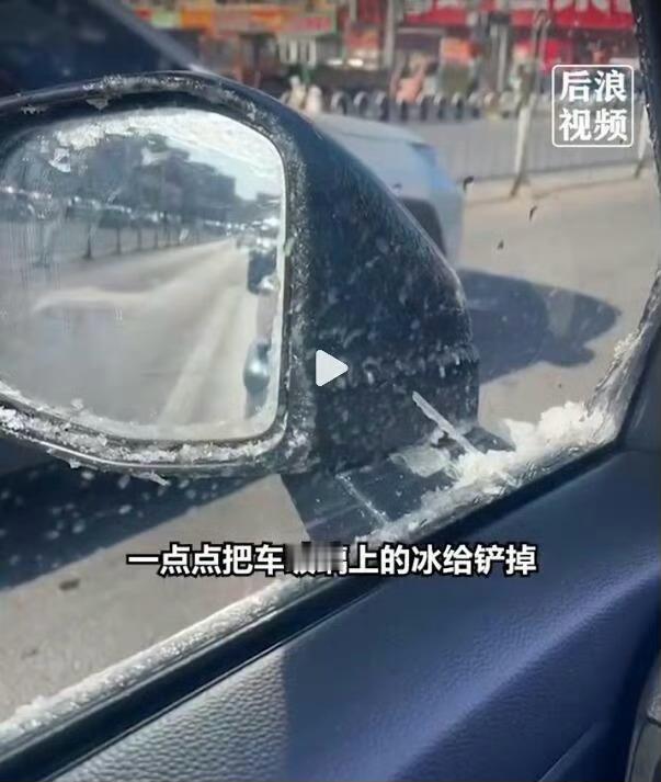 女子零下30度洗车秒变冰糖小汽车 零下30度可千万别在室外洗车!你看这刚泼上去的