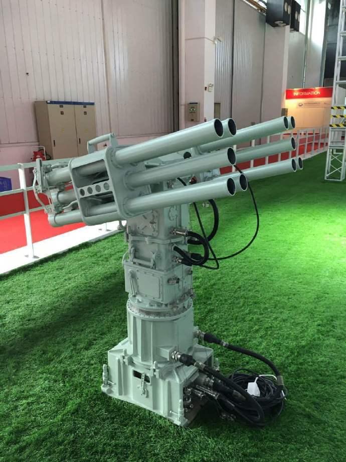 首见“广西”舰55毫米反蛙人火箭炮实弹发射画面。 该系统采用水声探测与自动瞄准技术,集成声呐、指挥仪和10管火箭发射装置,可实现50-500米范围内对蛙人等水下运动目标的精准打击。根据声纳数据,榴弹发射器可以进行齐射,或单发射。通过齐射可形成约80平方米杀伤区。