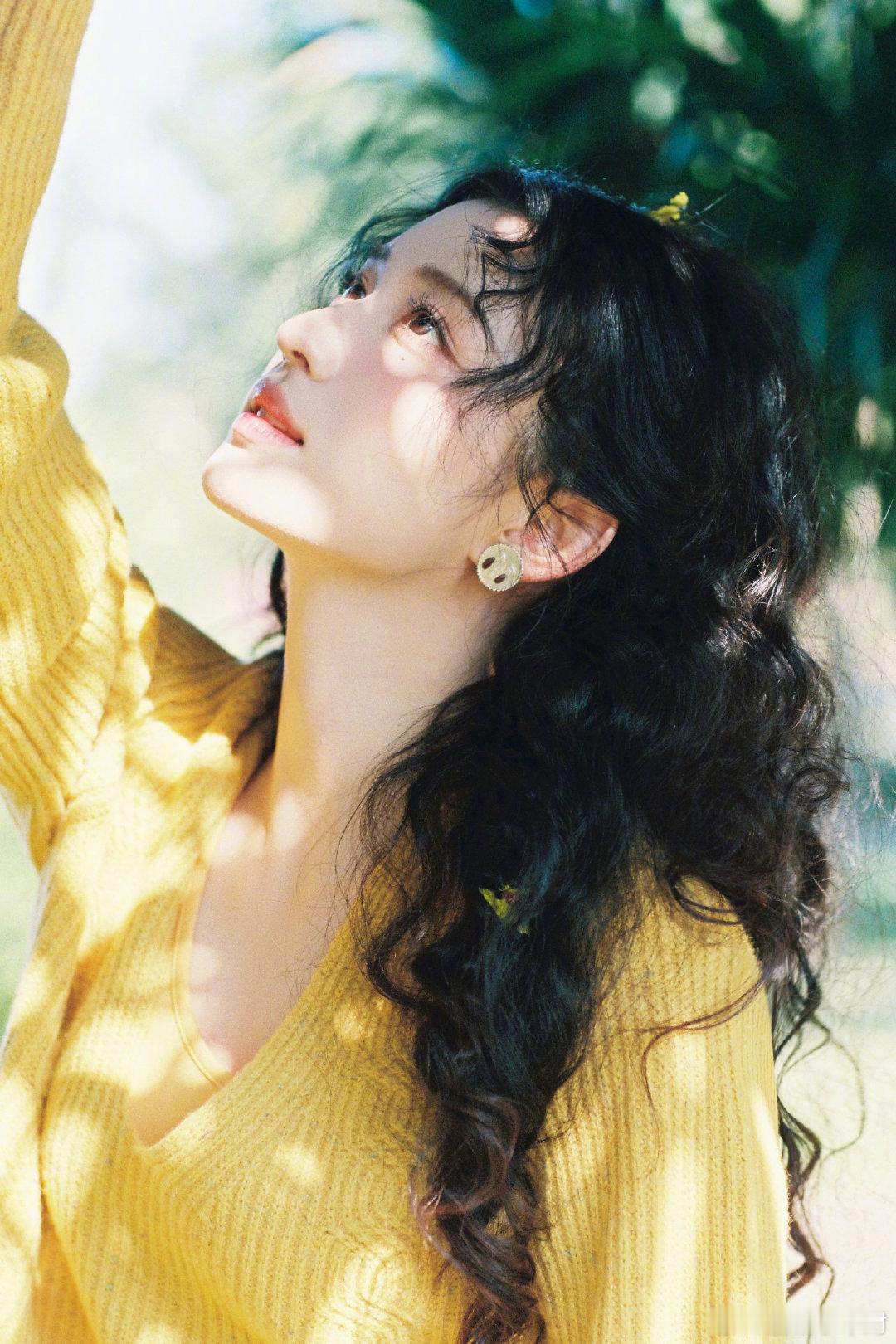 王楚然好明媚一张脸 明黄毛衣配卷发,甜妹天花板,一眼沦陷的明媚感🌸