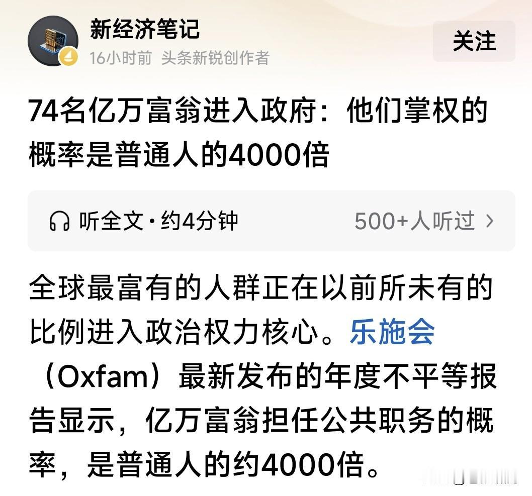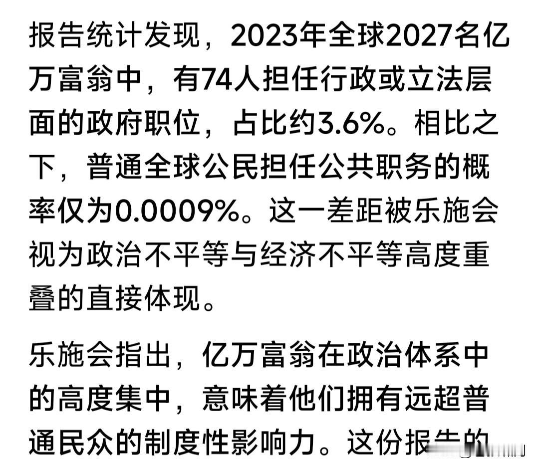 看到这篇文,想到一问题:美欧不少发达国家,都有富人进入政府与国会,这是好事还是坏