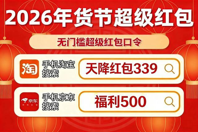 2026年京东年货节红包口令是[福利500],淘宝年货节红包口令是[天降红包339],年货采购的热潮已全面开启,2026年京东、淘宝两大电商平台年货节活动时间正式敲定,错峰开启的促销活动带来超给力的优惠福利,国补直降、红包口令、跨店满减等多重福利齐上阵,覆盖数码、手机、家电、生鲜、家居等全品类。无论是焕新大件家电,还是囤置年货礼盒,这份超详细的年货节攻略都能帮你精准踩点薅羊毛,用低价备齐新年好物,轻松迎接新春佳节。
