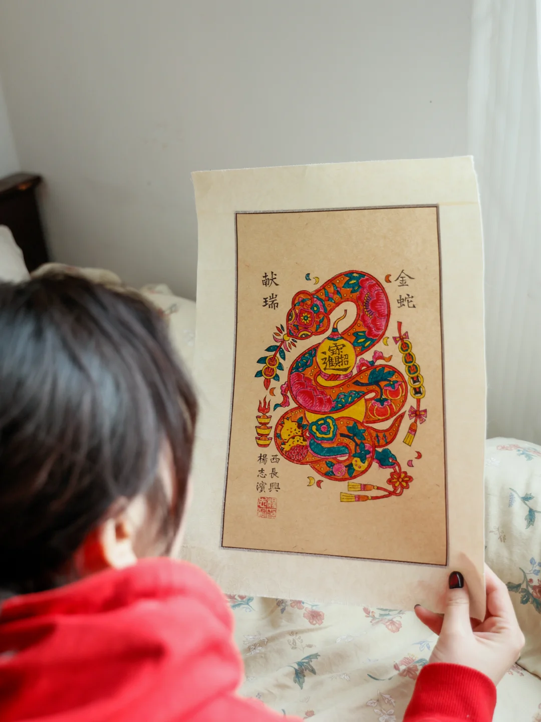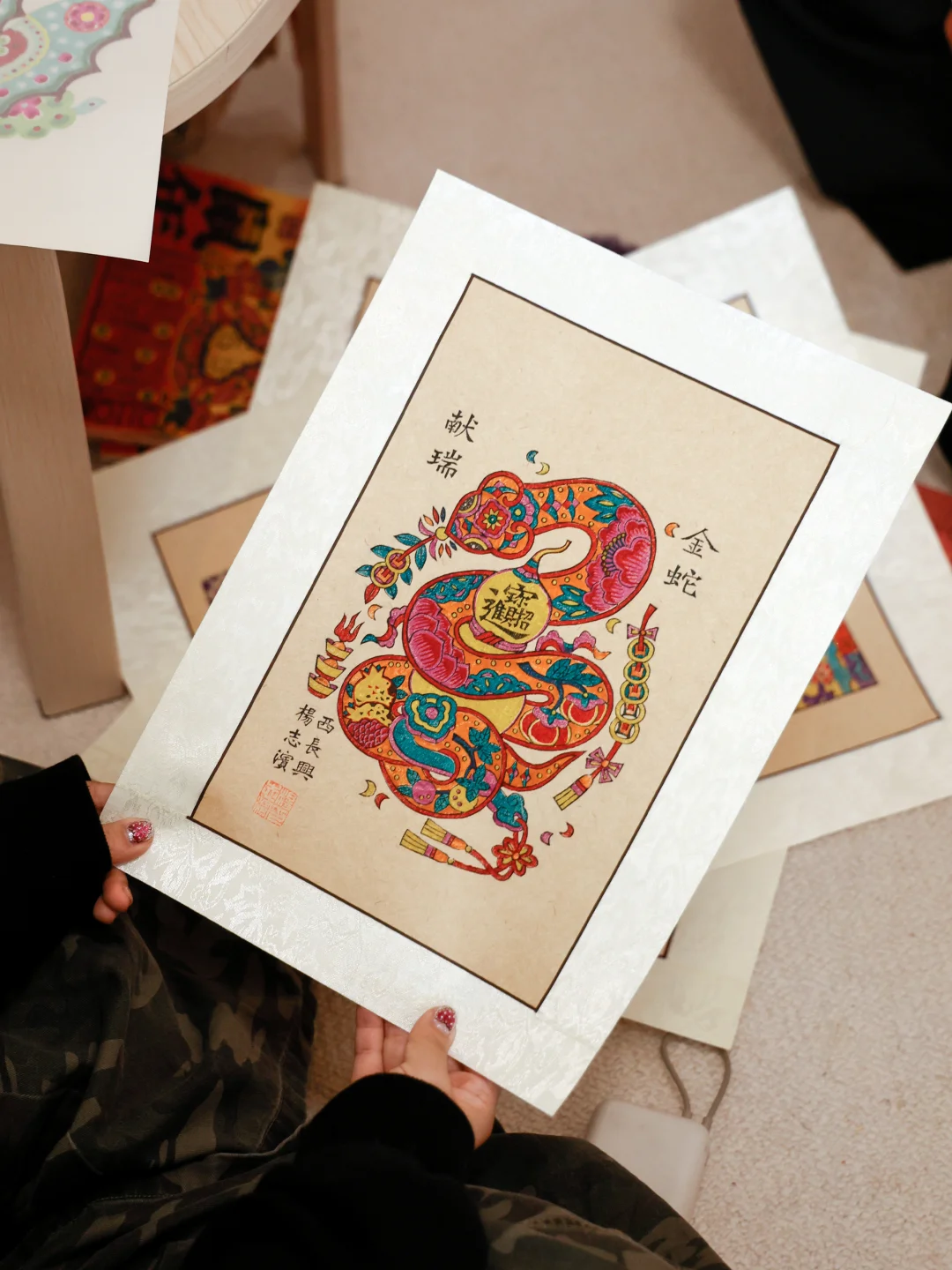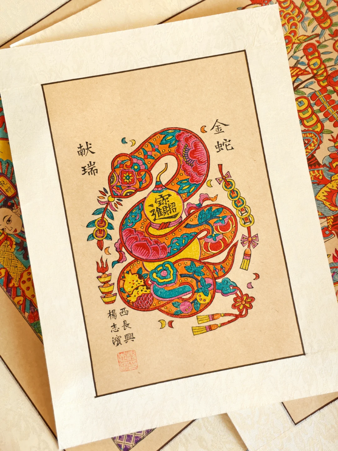 去年有多少人没有抢到的?? 现在来啦~ 画面是蛇吐金钱 抱着葫芦 金蛇寓意着招财 平安与繁荣 每一幅都是纯手工套色印刷 拿回去作为壁画装饰 也是很好看~