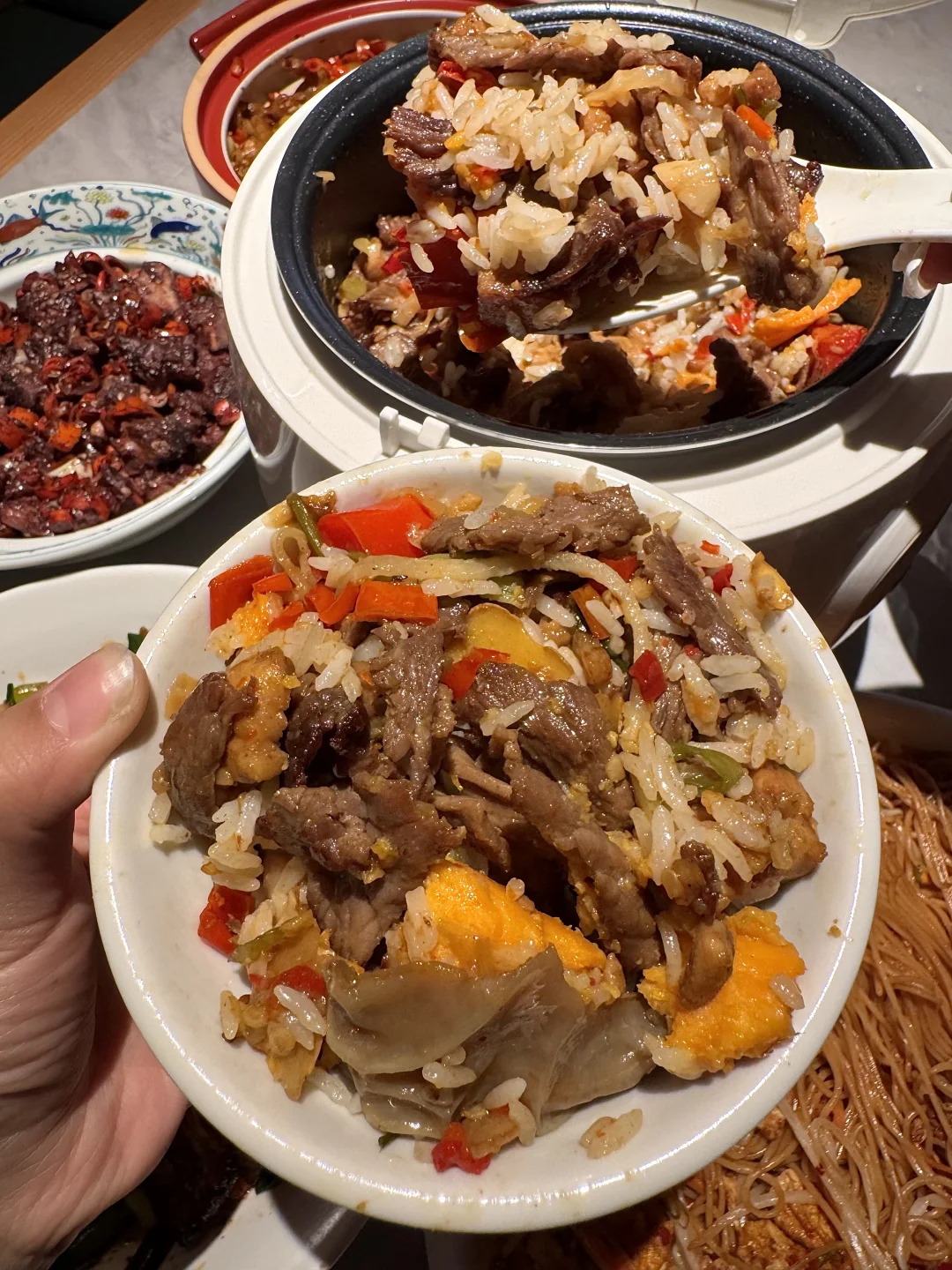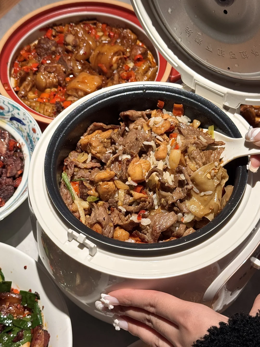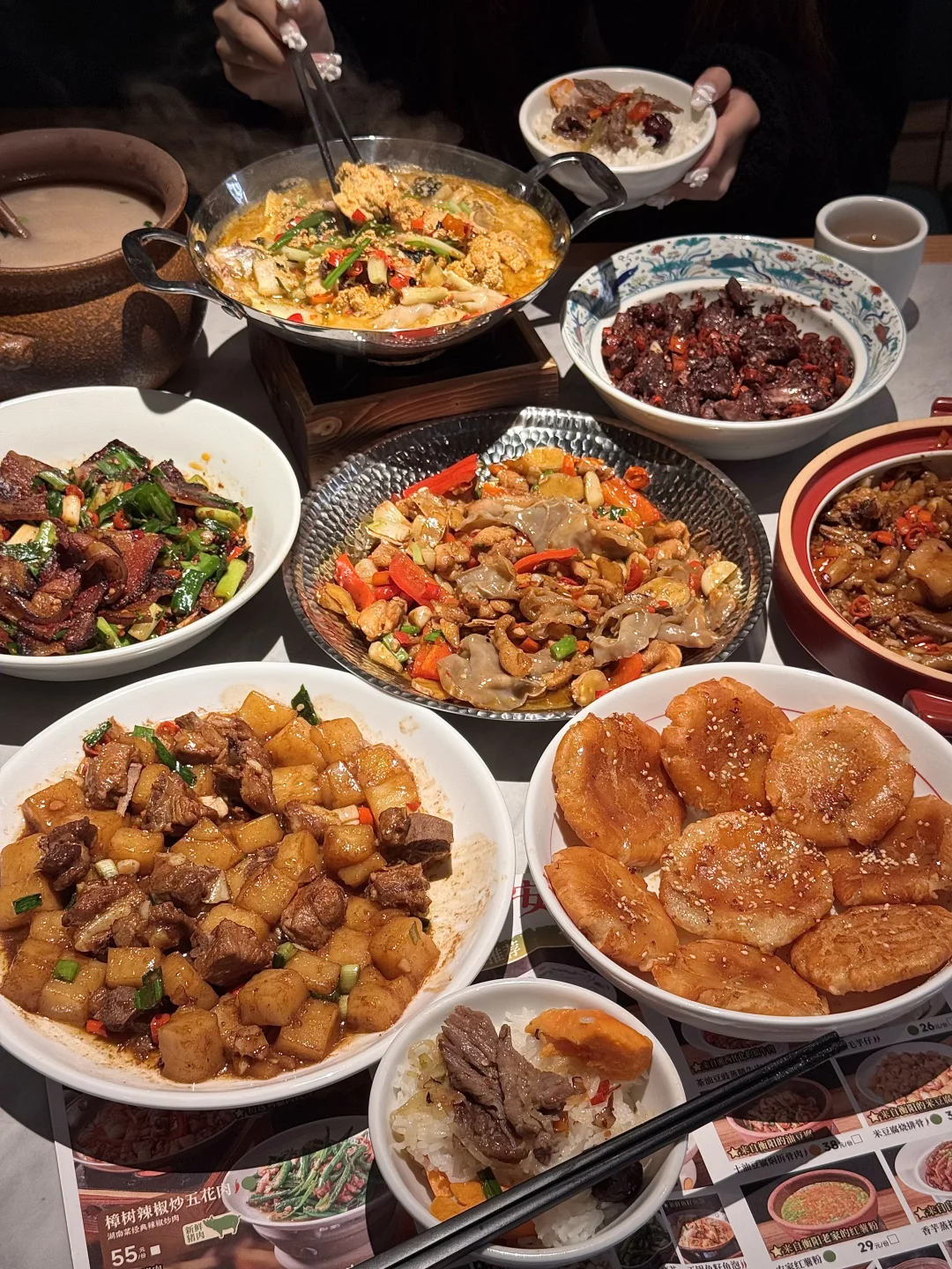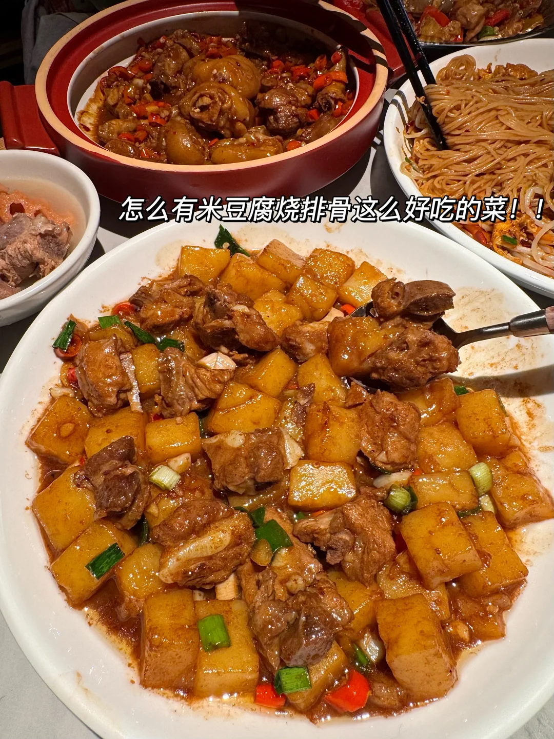 米豆腐烧排骨!本湘女终于在杭州吃到了😭米豆腐粉粉的又弹又嫩!排骨鲜嫩入味…好吃到吃完还要打包带一份走!! 坐穿地铁4号线也要去吃的!!叫:农耕记)个人推荐鲜炒黄牛肉 干锅越烧越香下饭连吃三碗!猪脚烧鸡爪 肥糯q弹油而不腻~还有干锅鱼籽鱼泡、茶油老姜炒鸡、攸县血鸭、桂花蜜糄粑……很有锅气随便点点都好吃! 个人心中杭州no.1的湖南菜!!!