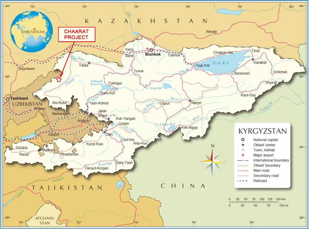 图尔库巴什/克孜勒塔什项目位于吉尔吉斯斯坦首都比什凯克西南方向490公里,经柏油路和砂石路直达,地处西天山金矿带核心区域,是世界级黄金富集区,历来是全球矿业巨头的重点布局方向。