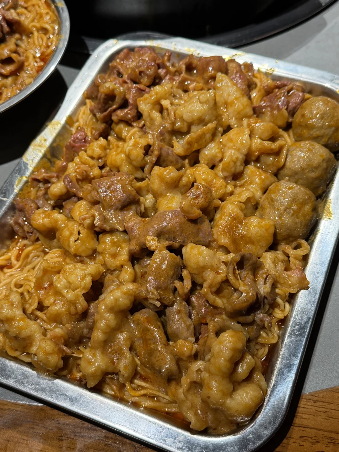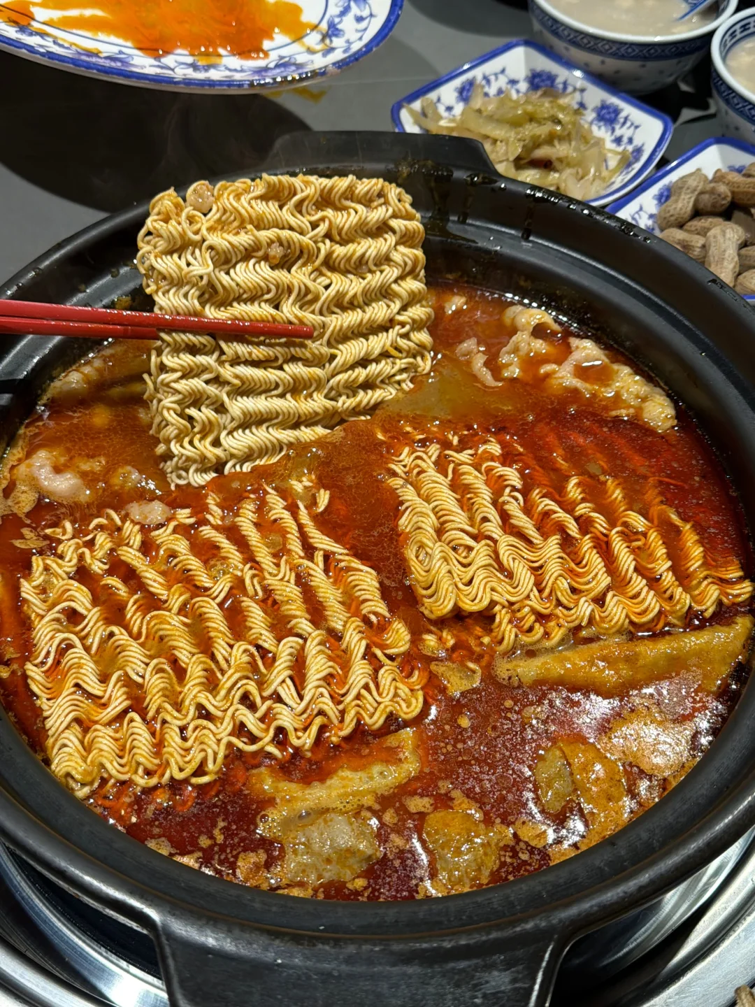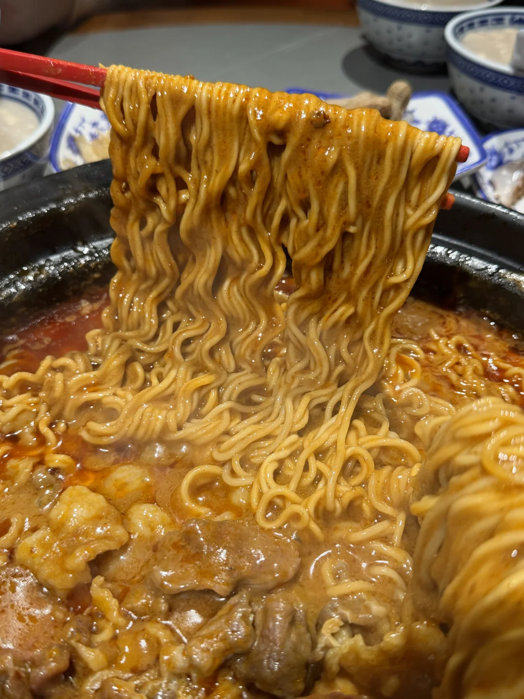 加泡面,牛肉,胸口油! 煮熟以后 嘟嘟嘟好吃 冬天就爱热气腾腾的 沙茶酱真的好好吃