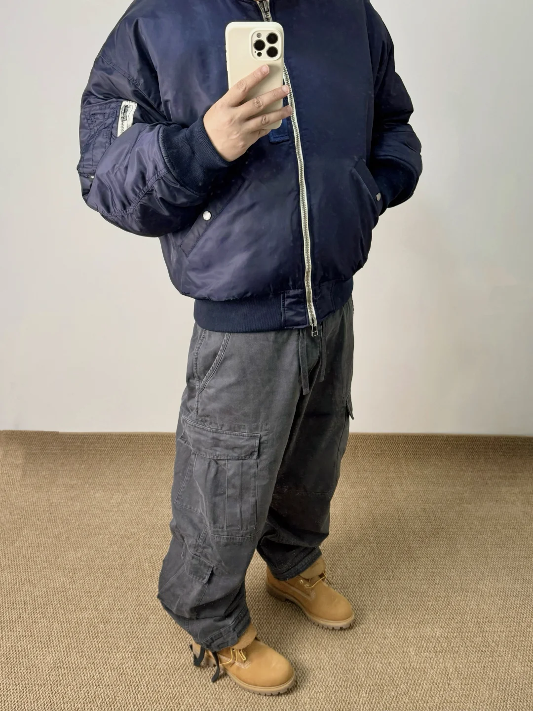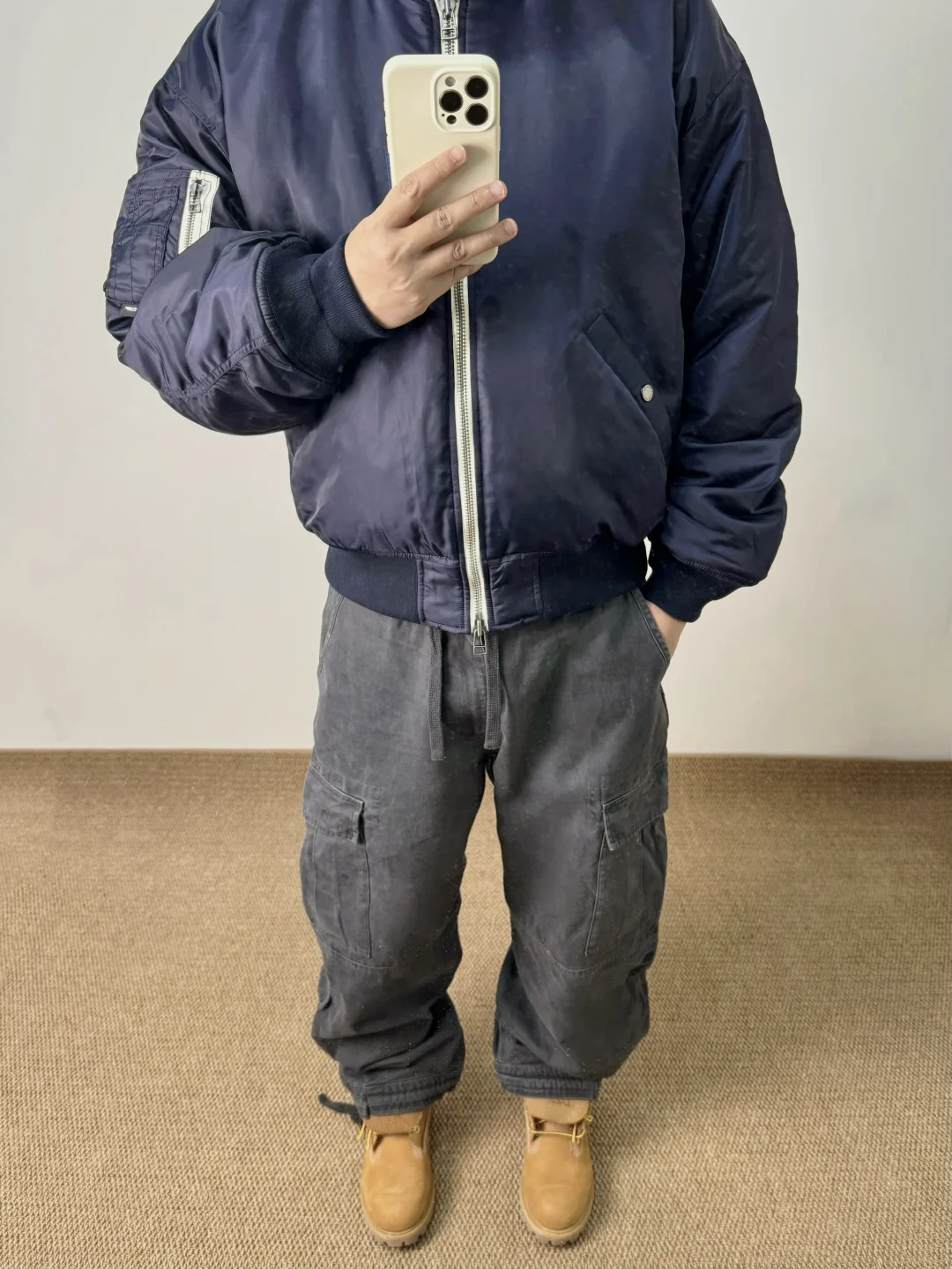 -Bomber是秋冬衣柜里的必备单品,可单穿也能跟卫衣叠穿;本期选择了蓝色系,夹棉升级更适合现在的气候,简单搭配工装裤&大黄靴就能出门了 . —————— . 🧥Massulti // L . 👖Massulti // L . 👟Timberland / 大黄靴 // 42 . —————— . ✏️本人178cm75kg 球鞋尺码265mm(正常EU42) . 💭以上均为我个人观点,不喜勿喷,欢迎讨论