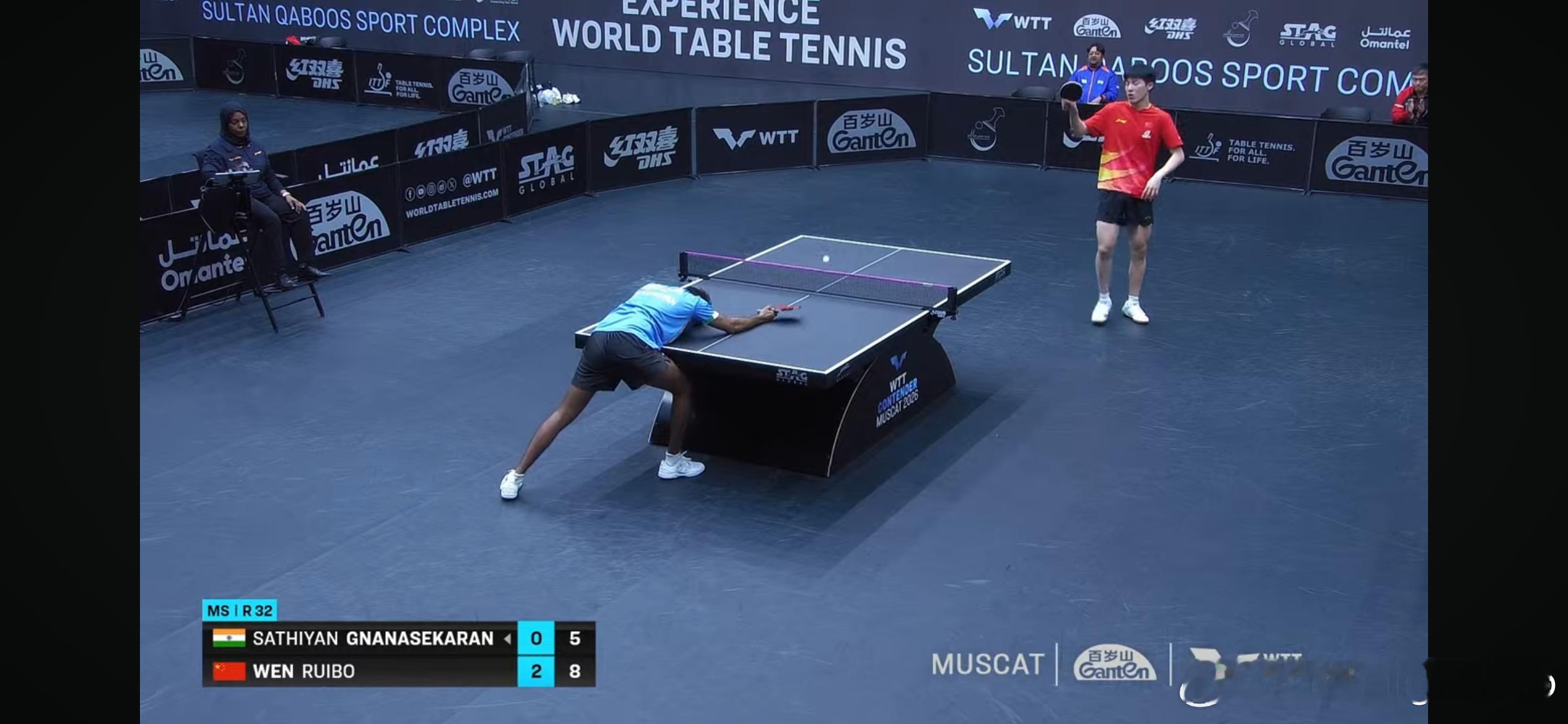 WTT常规挑战赛马斯喀特站2026 男单1/16决赛:🇨🇳温瑞博3比0沙提安