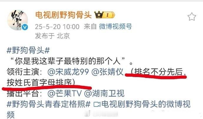 野狗骨头的番位 野狗骨头番位有异议吗?不就是平番吗?宋威龙 张婧仪(排名不分先后,按姓氏首字母排序) y1s1,虽然是平番,但是平在前还是平后,是有略微差别的。要不然怎么是按姓氏排,宋威龙在前张婧仪在后比一番二番好听些 这是标准平番,没有争论的地方!但…内娱是连海报都要争,为了番位花样百出的地方。不过如果像日娱那样,顺位第一扛扑爆,剧播不好开记者会道歉,配角加戏这些原因统统不算,估计就会你好我好大家好一片和谐了野狗骨头口碑,野狗骨头集数,张婧仪有打火机宋威龙有骄阳