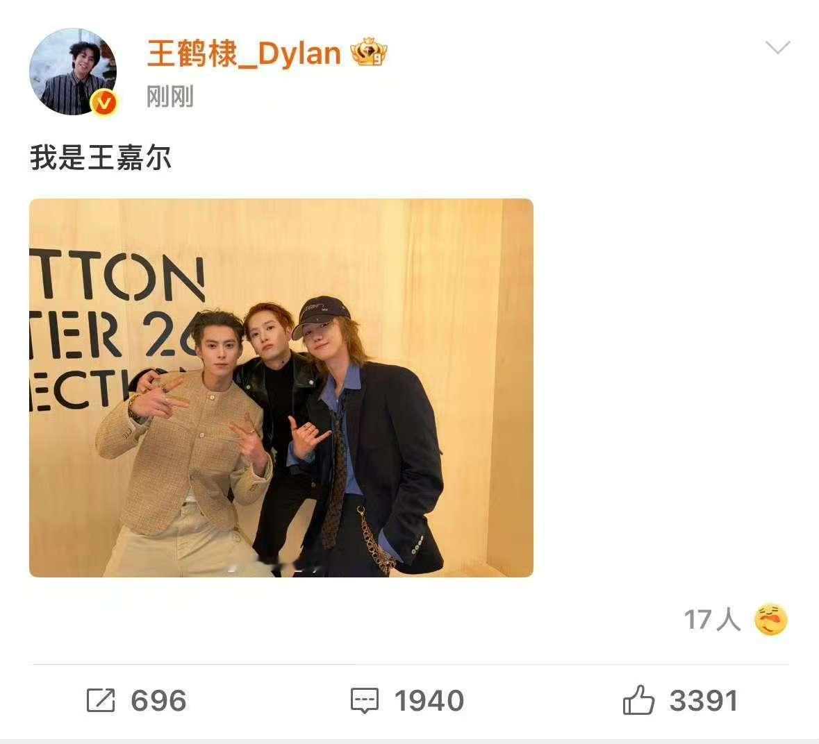 王鹤棣晒与王嘉尔徐明浩合影王鹤棣晒照说我是王嘉尔 哇! 王鹤棣晒与王嘉尔徐明浩