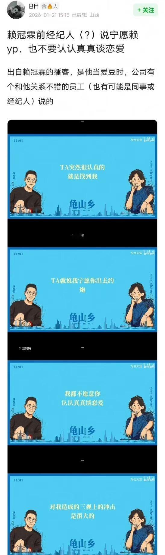 赖冠霖前经纪人言论离谱???这段播客内容真的是让人汗颜赖冠霖退圈原因有迹可循 娱乐