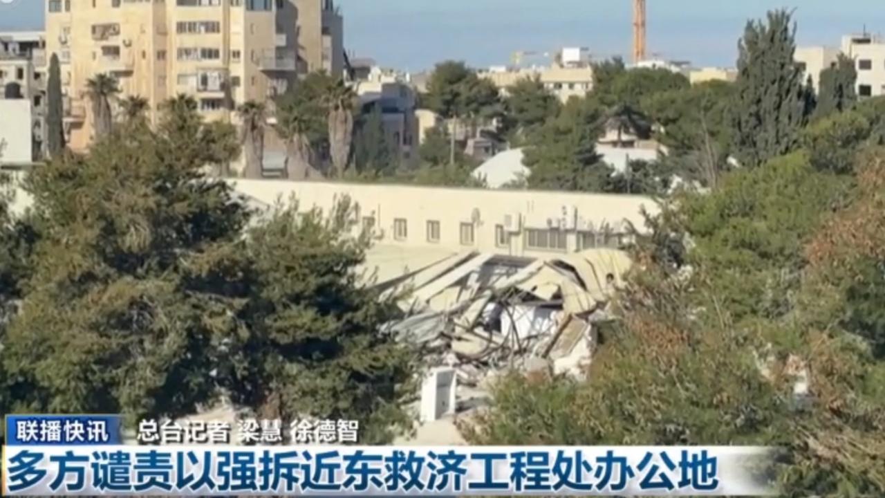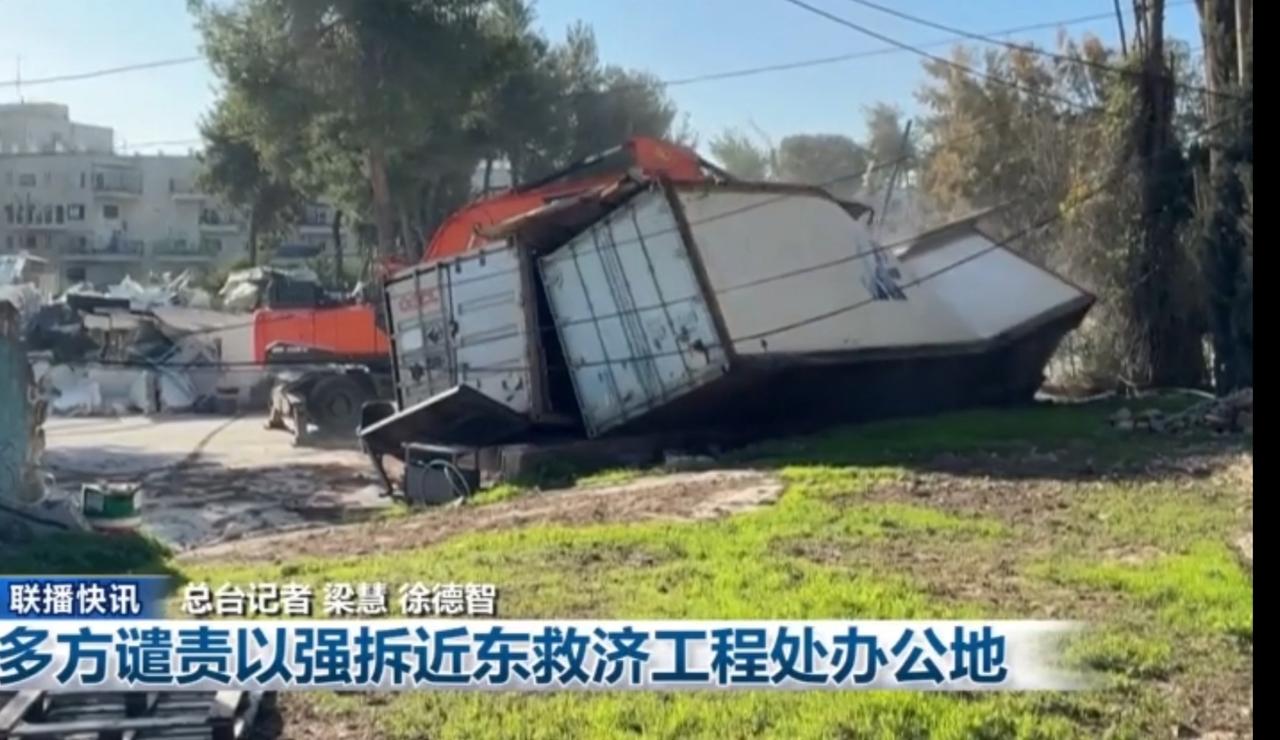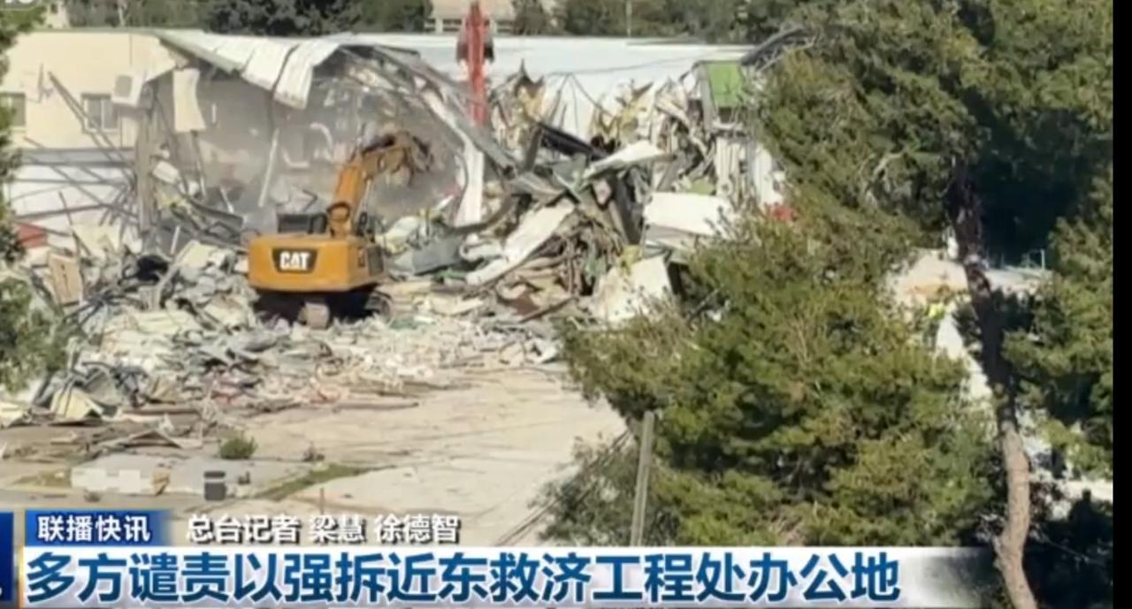 多方强烈谴责以色列强拆联合国近东巴勒斯坦难民救济和工程处(近东救济工程处)办公地点的行为。画面中,挖掘机正在作业,建筑已成一片废墟,这一行动严重破坏了国际人道救援体系的运转。国际社会对此表示愤慨,呼吁立即停止此类行为,保障人道救援机构的安全与行动自由,以维护地区脆弱的人道局势。