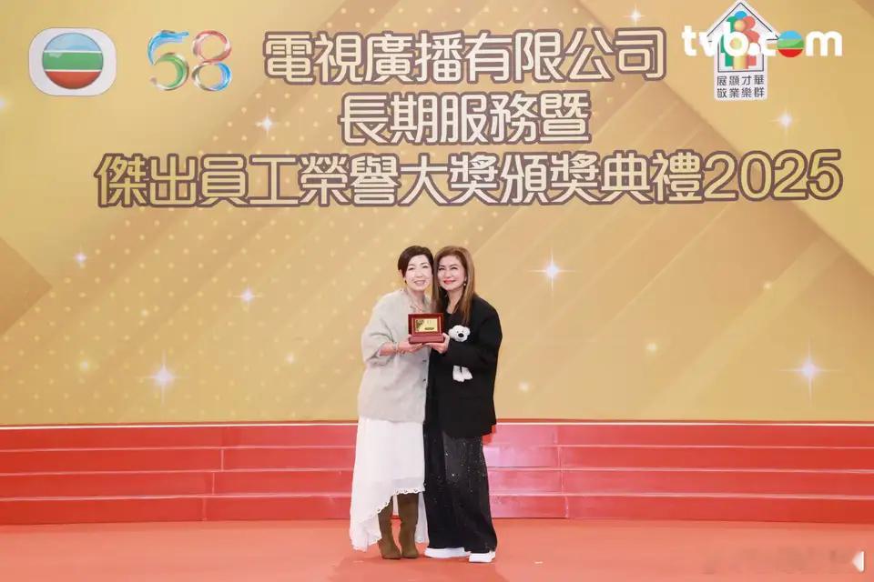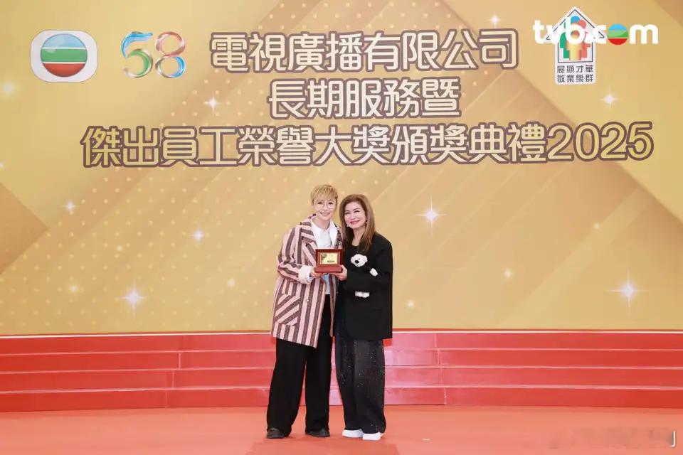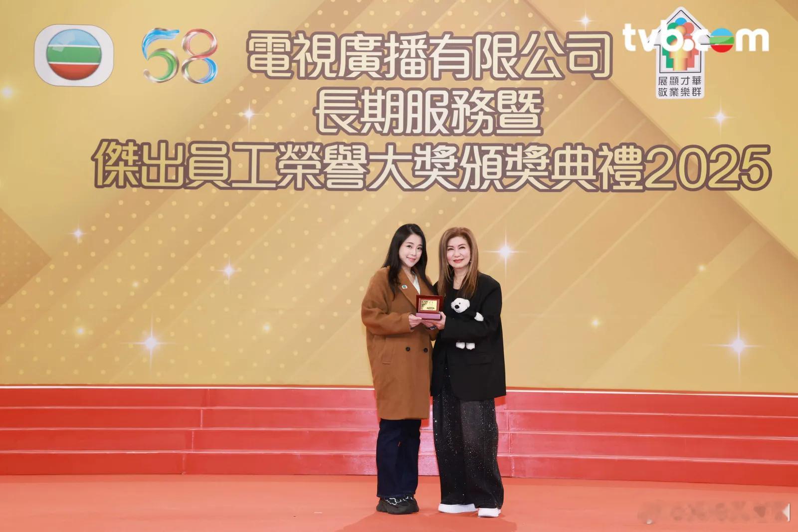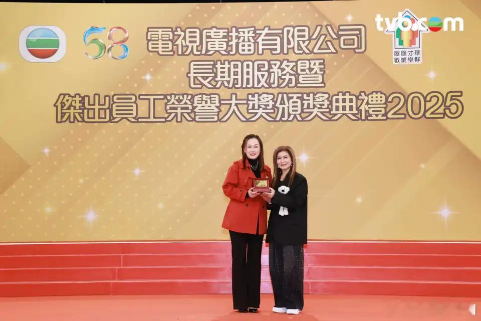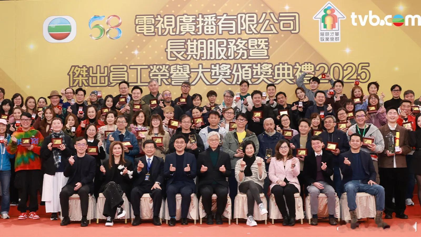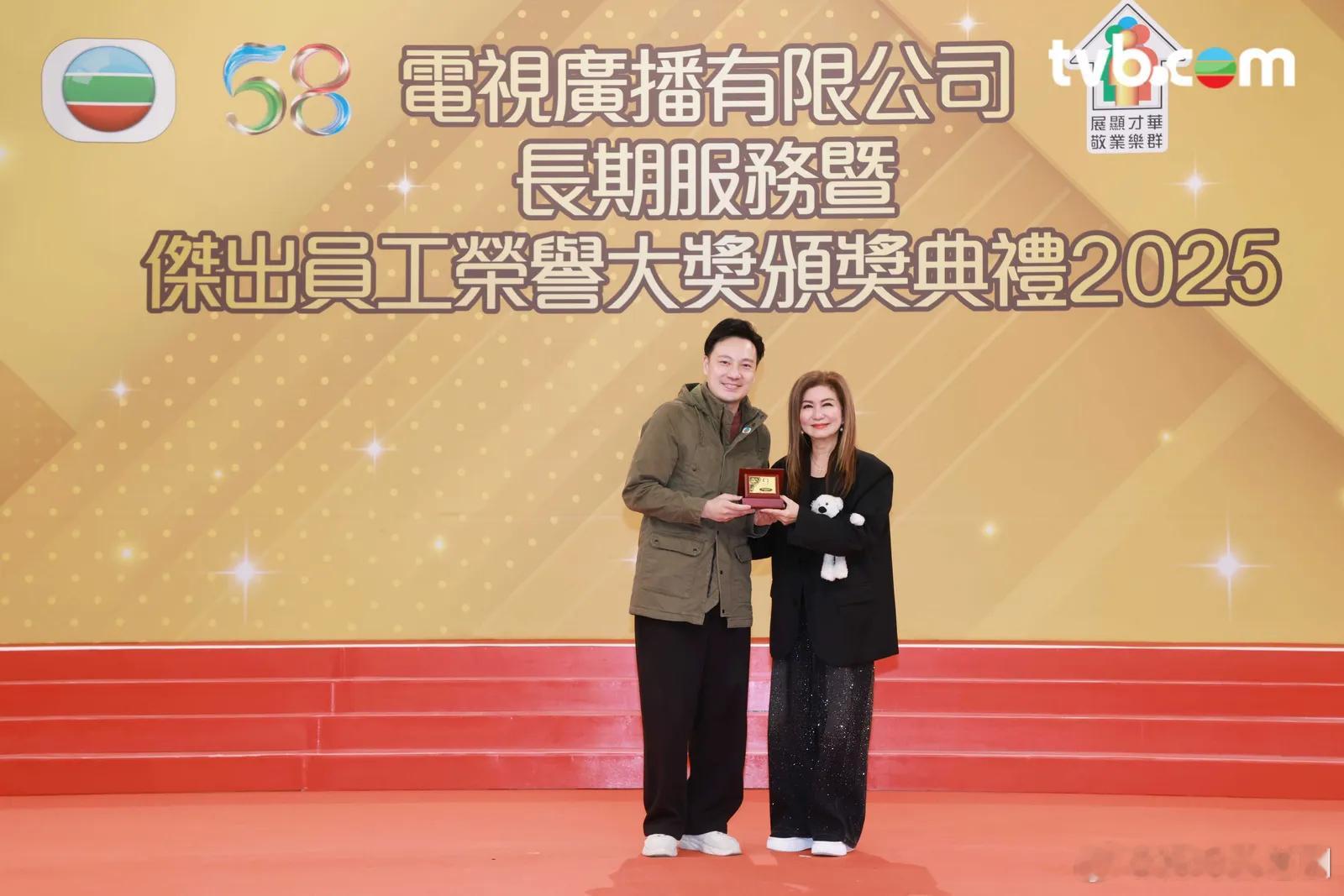 TVB長期服務暨傑出員工榮譽大獎頒獎典禮2025.今日(21日)TVB 舉行《長期服務暨傑出員工榮譽大獎頒獎典禮2025》,以感謝及表彰為公司辛勤服務的藝員及工作人員。TVB 總經理(商務營運) 蕭世和 暨 多位高級行政人員 均出席典禮。藝員得獎情況如下:30 年服務獎— 湯盈盈、黎芷珊、滕麗名、姚瑩瑩20 年服務獎— 關浩揚、曾琬莎、鄧永健10 年服務獎— 谷婭溦、關曜儁、林凱恩、吳偉豪、鄧伊婷、區永權、鄭恕峰、崔錦棠、梁芷珮、車婉婉、周嘉洛傑出員工— 譚俊彥、龔嘉欣TVB