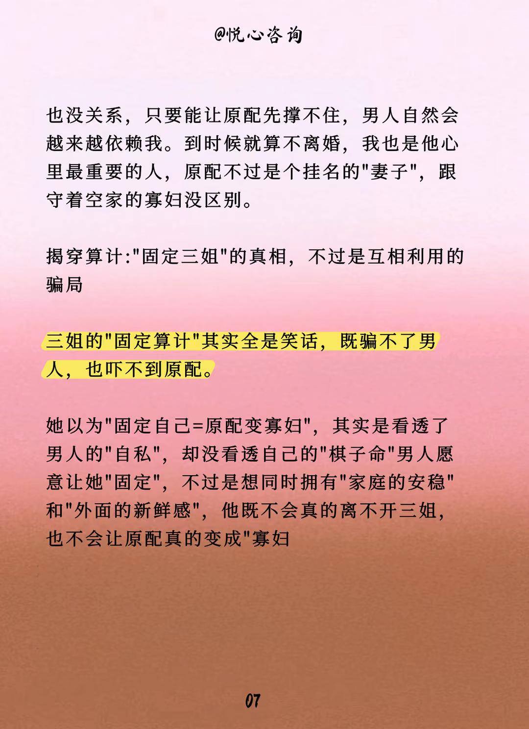 三姐直言:只要变成固定三姐,原配就成寡妇 第三者 婚姻危机 家庭婚姻情感 老公出