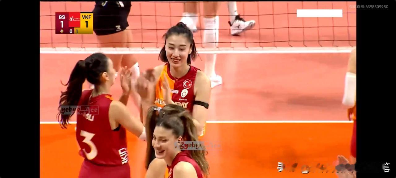 加拉塔萨雷和瓦基弗银行,硬碰硬,拼主攻和接应肯定下风,看博斯科维奇与队友笑得多轻松。再加上二传给副攻快攻球很少,能配上的又不下球,打得异常困难。 加拉塔萨雷拦网还得靠王媛媛,打了一局多,她拦死马尔科娃三个了。现在只剩下与对手死拼拦网,发球和防守,看看能不能赢下一局。王媛媛拦网 土耳其排球队