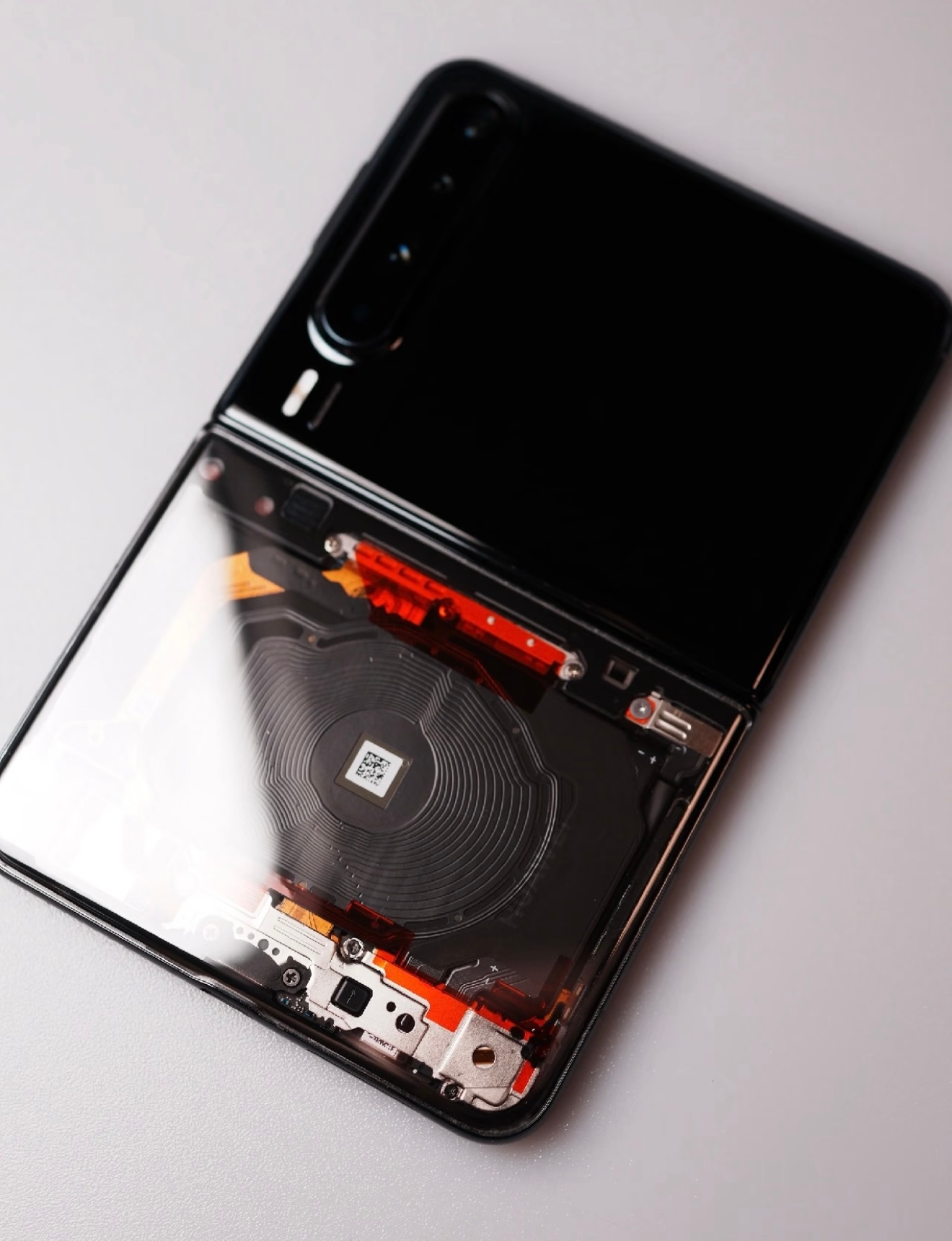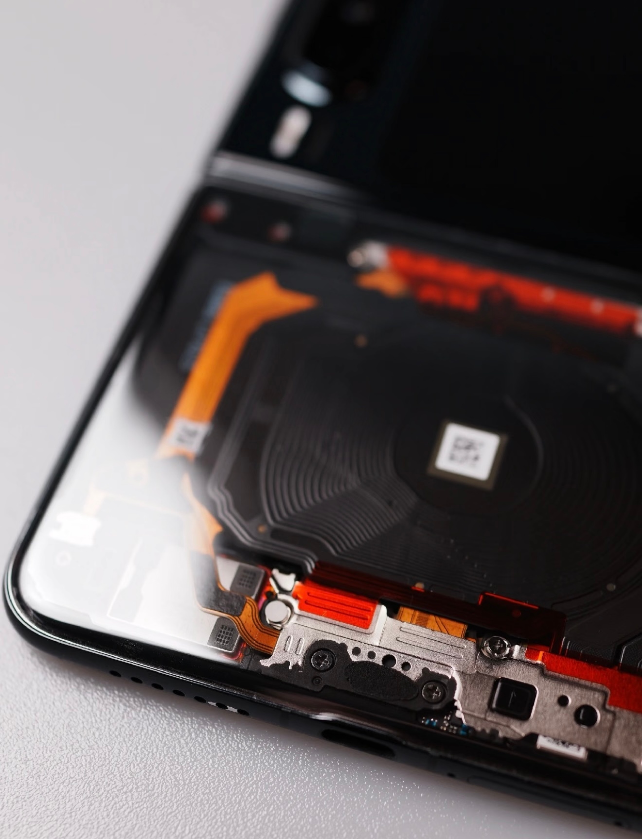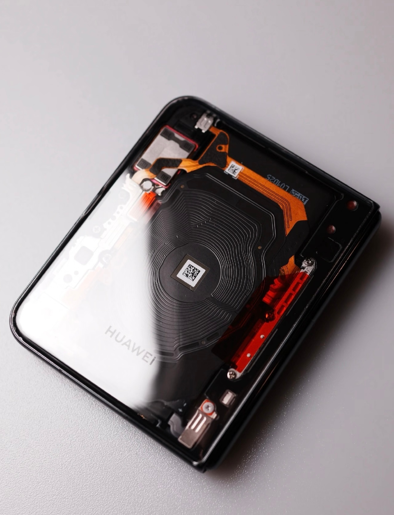 给你们看一个华为PuraX 美学爆改之作纯黑机身+透明后盖 ,红橙色排线点睛之笔