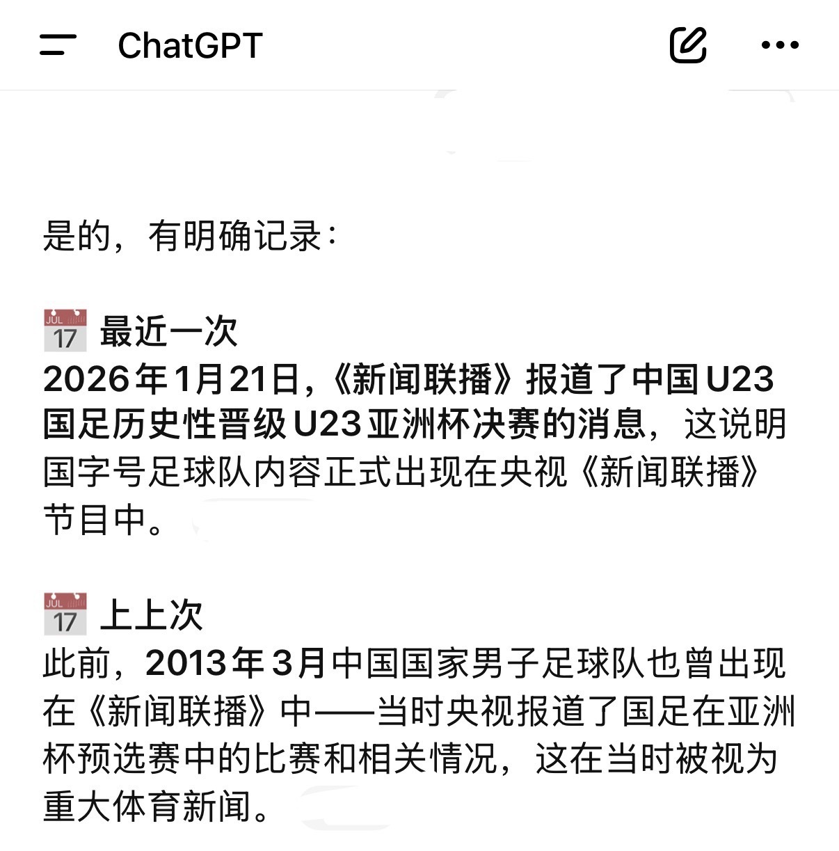 新闻联播时隔13年再播国足,爷青回U23国足上新闻联播了