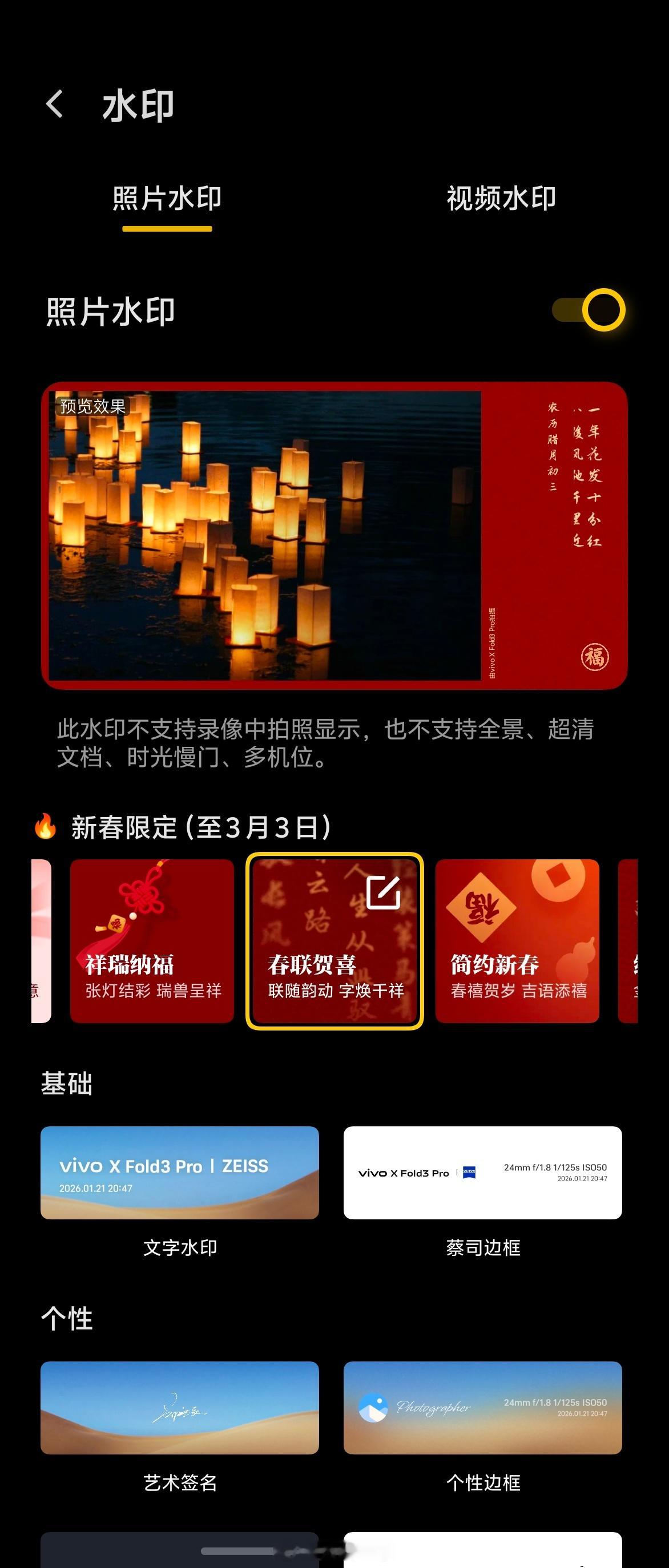有一说一,vivo 的这个新春照片水印真的有点好看的哇!明天去拍几张照试一试
