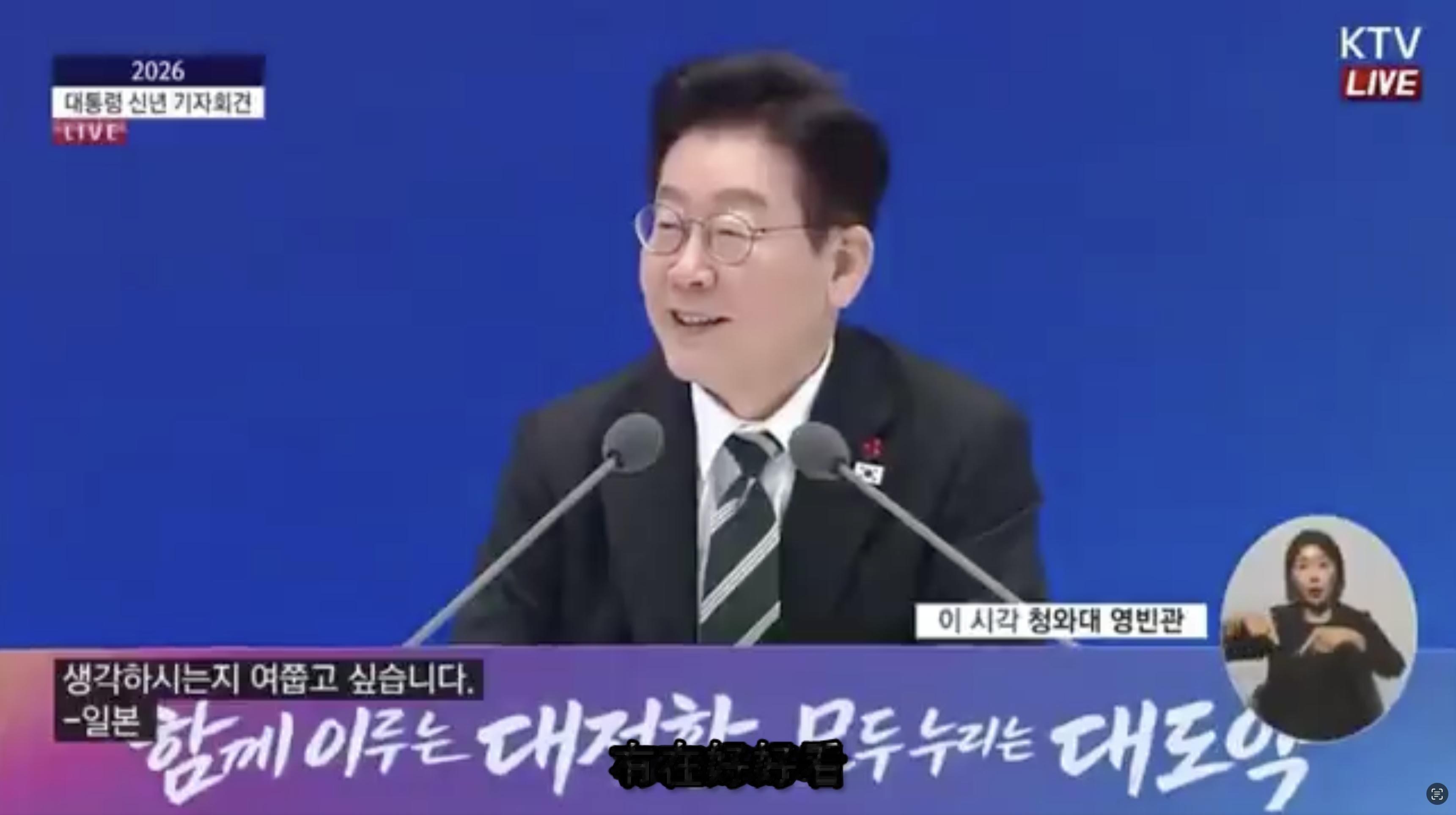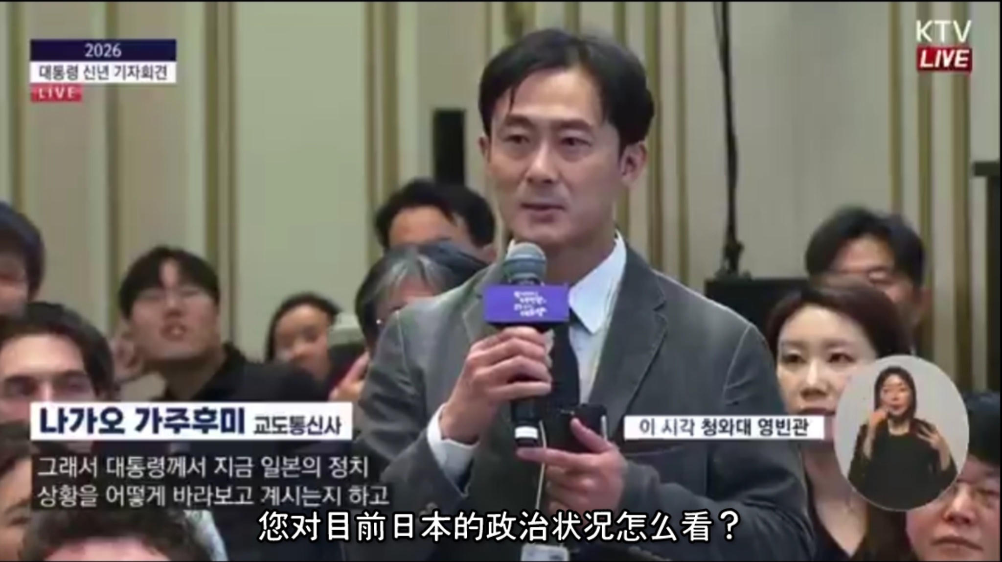 面对日本记者“您怎么看日本目前的政治状况?”的提问,李在明的回答