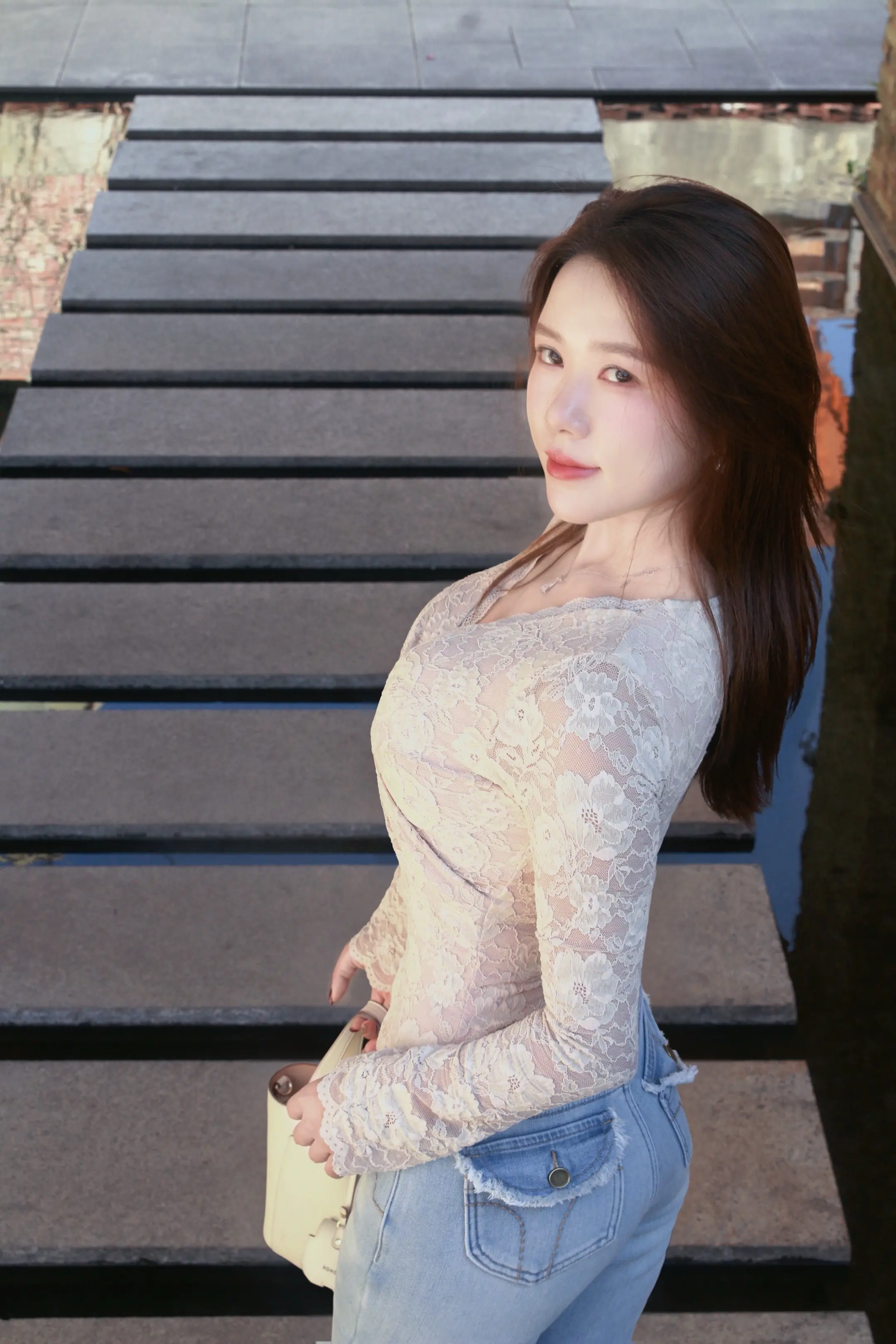 人像摄影,20岁御姐范成熟稳重,样貌和图1一样在景点,非刻意构图于布光,冷白皮,