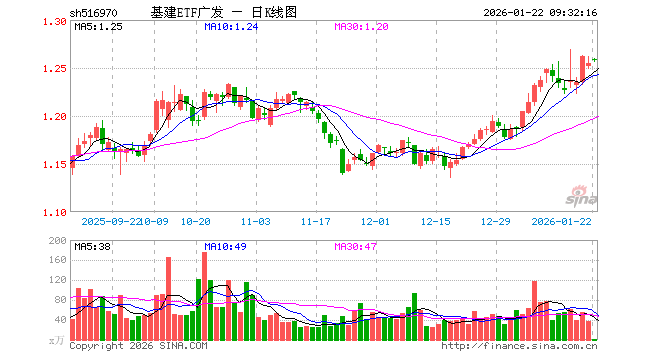 1月22日,基建ETF广发(516970)开盘涨0.32%,报1.259元。基建ETF广发(516970)重仓股方面,中国中铁开盘涨0.00%,中国建筑涨0.20%,中国电建跌0.50%,中国铁建涨0.00%,中国能建涨0.00%,中国交建涨0.12%,中国中冶涨0.00%,中国化学跌0.68%,金诚信跌0.17%,四川路桥涨0.00%。