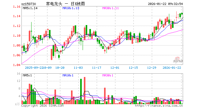 龙头家电ETF(159730)业绩比较基准为国证龙头家电指数收益率,管理人为博时基金管理有限公司,基金经理为尹浩,成立(2021-12-13)以来回报为13.91%,近一个月回报为4.10%。