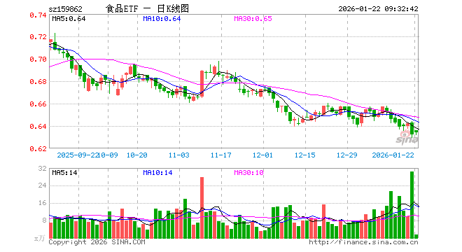 食品ETF(159862)业绩比较基准为中证细分食品饮料产业主题指数收益率,管理人为银华基金管理股份有限公司,基金经理为李宜璇,成立(2021-10-26)以来回报为-36.88%,近一个月回报为-4.01%。