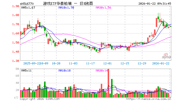 1月22日,游戏ETF华泰柏瑞(516770)开盘涨0.18%,报1.670元。游戏ETF华泰柏瑞(516770)重仓股方面,巨人网络开盘跌0.02%,恺英网络跌0.04%,三七互娱涨0.53%,光线传媒涨0.18%,神州泰岳涨0.00%,完美世界涨0.28%,吉比特涨0.21%,掌趣科技涨0.00%,顺网科技涨0.65%,浙数文化涨0.00%。