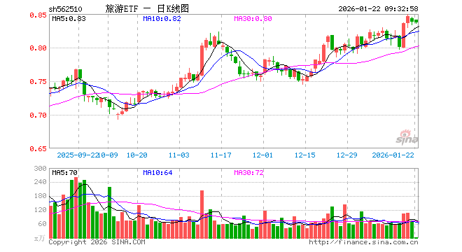 1月22日,旅游ETF(562510)开盘涨0.36%,报0.841元。旅游ETF(562510)重仓股方面,中国中免开盘涨2.01%,上海机场涨0.06%,中国东航涨0.00%,宋城演艺跌0.23%,南方航空跌0.12%,中国国航涨0.00%,华侨城A跌0.37%,锦江酒店跌0.91%,春秋航空涨0.00%,首旅酒店涨0.28%。