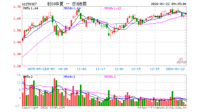 1月22日,创业板50ETF华夏(159367)开盘涨0.49%,报1.629元。创业板50ETF华夏(159367)重仓股方面,宁德时代开盘涨0.35%,中际旭创涨1.41%,东方财富涨0.00%,新易盛涨0.12%,阳光电源涨0.49%,胜宏科技涨1.31%,汇川技术涨0.65%,迈瑞医疗涨0.28%,亿纬锂能涨0.09%,同花顺涨0.38%。