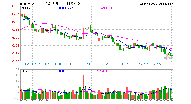 1月22日,主要消费ETF(159672)开盘涨0.14%,报0.734元。主要消费ETF(159672)重仓股方面,贵州茅台开盘涨0.07%,五粮液涨0.02%,牧原股份跌0.09%,伊利股份涨0.00%,温氏股份涨0.13%,泸州老窖涨0.13%,山西汾酒跌0.01%,海天味业涨0.14%,东鹏饮料跌0.08%,海大集团跌0.02%。