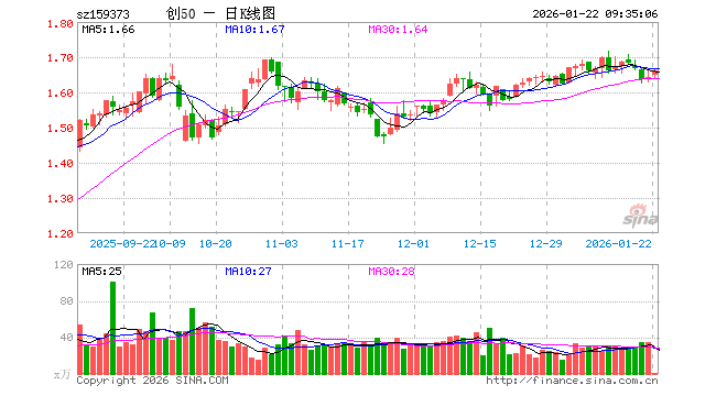 1月22日,创业板50ETF嘉实(159373)开盘涨0.43%,报1.650元。创业板50ETF嘉实(159373)重仓股方面,宁德时代开盘涨0.35%,中际旭创涨1.41%,东方财富涨0.00%,新易盛涨0.12%,阳光电源涨0.49%,胜宏科技涨1.31%,汇川技术涨0.65%,迈瑞医疗涨0.28%,亿纬锂能涨0.09%,同花顺涨0.38%。
