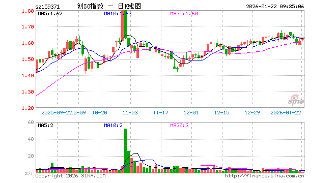 1月22日,创业板50ETF富国(159371)开盘涨0.50%,报1.616元。创业板50ETF富国(159371)重仓股方面,宁德时代开盘涨0.35%,中际旭创涨1.41%,东方财富涨0.00%,新易盛涨0.12%,阳光电源涨0.49%,胜宏科技涨1.31%,汇川技术涨0.65%,迈瑞医疗涨0.28%,亿纬锂能涨0.09%,同花顺涨0.38%。