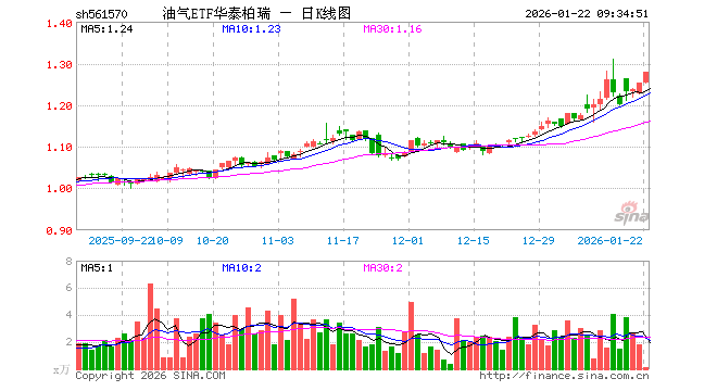 1月22日,油气ETF华泰柏瑞(561570)开盘涨0.08%,报1.254元。油气ETF华泰柏瑞(561570)重仓股方面,中国海油开盘涨0.95%,中国石油涨0.80%,中国石化涨0.34%,杰瑞股份涨0.00%,招商轮船涨0.00%,广汇能源跌0.39%,中远海能涨0.00%,恒力石化涨0.87%,招商南油涨0.00%,海油工程跌0.79%。