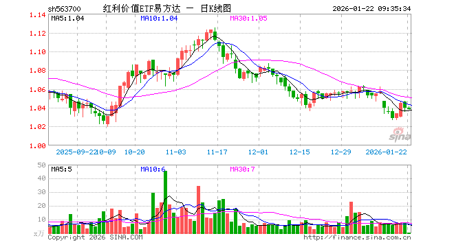 1月22日,红利价值ETF易方达(563700)开盘涨0.00%,报1.040元。红利价值ETF易方达(563700)重仓股方面,中远海控开盘涨0.07%,潞安环能跌0.16%,中粮糖业跌0.41%,南钢股份跌0.18%,山西焦煤跌0.15%,兖矿能源涨0.07%,成都银行跌0.06%,南京银行涨0.00%,大秦铁路涨0.00%,兴业银行涨0.31%。