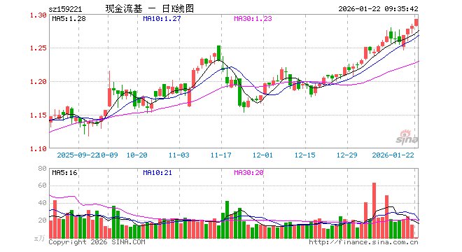 1月22日,现金流ETF嘉实(159221)开盘涨0.00%,报1.282元。现金流ETF嘉实(159221)重仓股方面,中国海油开盘涨0.95%,上汽集团跌0.07%,五粮液涨0.02%,格力电器涨0.05%,洛阳钼业跌0.22%,中国铝业涨0.00%,陕西煤业涨0.09%,上海电气涨1.64%,正泰电器涨0.09%,厦门国贸跌0.29%。