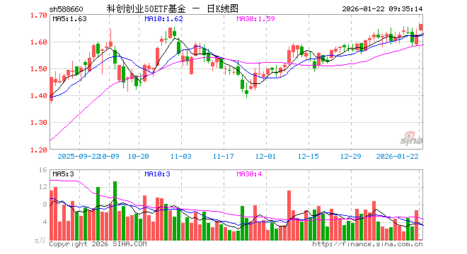 1月22日,科创创业50ETF基金(588660)开盘涨0.99%,报1.639元。科创创业50ETF基金(588660)重仓股方面,宁德时代开盘涨0.35%,新易盛涨0.12%,中际旭创涨1.41%,寒武纪跌0.73%,中芯国际涨1.41%,阳光电源涨0.49%,海光信息涨4.82%,澜起科技涨8.03%,胜宏科技涨1.31%,汇川技术涨0.65%。