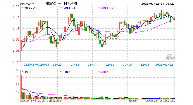 1月22日,创业板50ETF大成(159298)开盘涨0.27%,报1.134元。创业板50ETF大成(159298)重仓股方面,宁德时代开盘涨0.35%,东方财富涨0.00%,新易盛涨0.12%,中际旭创涨1.41%,胜宏科技涨1.31%,汇川技术涨0.65%,阳光电源涨0.49%,迈瑞医疗涨0.28%,天孚通信跌0.02%,同花顺涨0.38%。