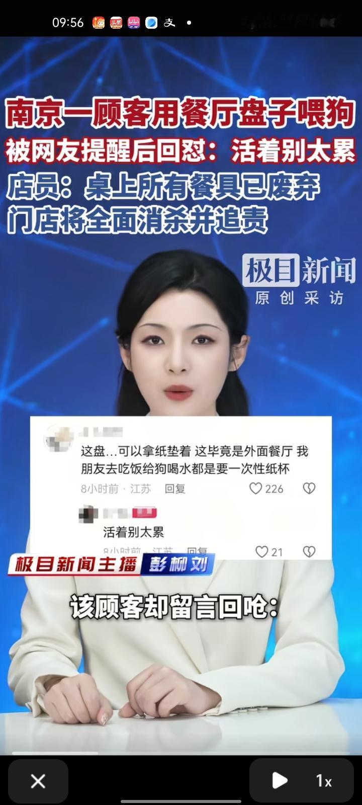 1月20日,江苏南京。一段在南京市秦淮区一家料理店,有人用餐厅盘子喂食宠物狗引发热议,被网友提醒后他却怼“活着别太累”。涉事料理店回应称,该门店允许携带宠物进入,但要求宠物只能待在专用篮筐内,喂狗的篮子和桌上的餐具均已单独收回并做废弃处理,门店将全面消杀并追责。 “活着别太累”从不是漠视规则、冒犯他人的借口,真正的轻松,是守着边界的自在,而非放任自我的随意。 餐厅本就划定了宠物入店的规矩,专用篮筐是为了兼顾宠物友好与公共卫生,可有人偏要突破底线,用餐饮餐具喂狗,无视其他食客的用餐安全与感受,被提醒后还以“别太累”狡辩,本质上是把自己的随心所欲,建立在了破坏公共秩序、忽视他人权益的基础上。 这家料理店的处理态度值得肯定,及时废弃涉事餐具、全面消杀并追责,既是对食客负责,也是对规则的坚守。公共场合的规则,从来都不是“枷锁”,而是保障每个人都能舒心相处的底线,守规则,才是对自己、对他人最基本的尊重,这样的“累”,从来都值得。