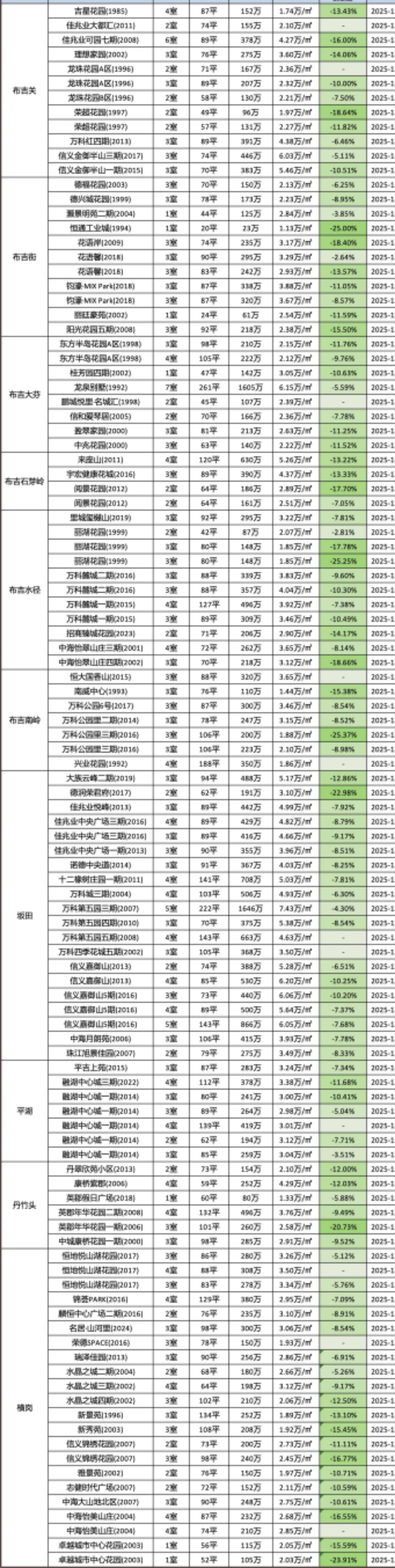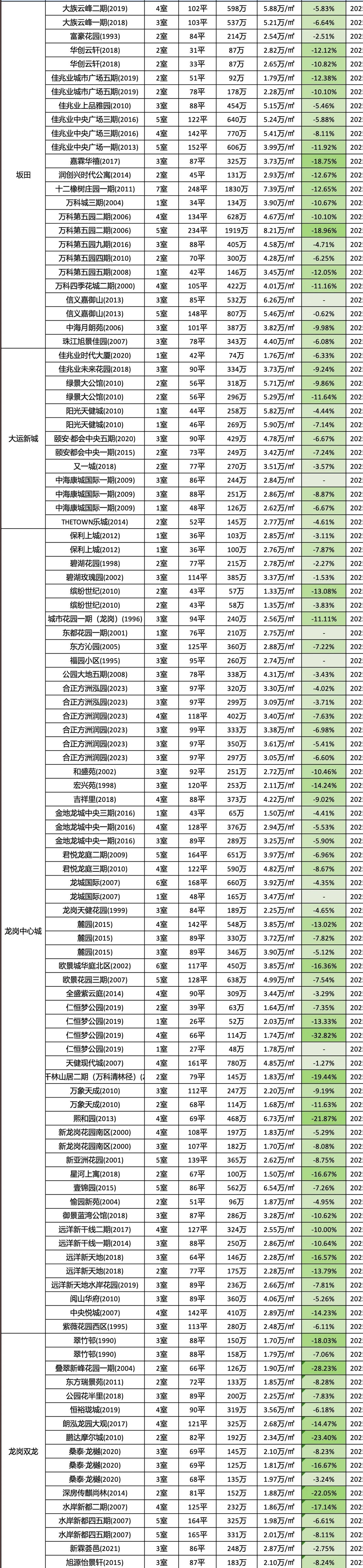 龙岗12月成交数据