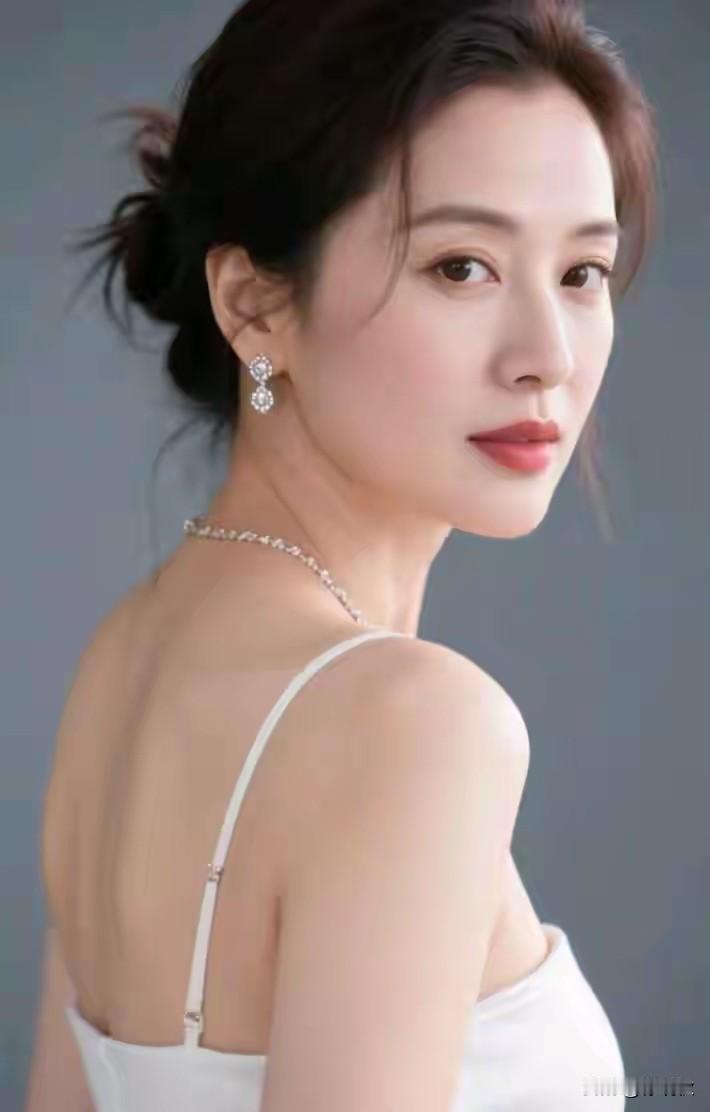 中年女性显娇容, 回眸一笑百媚生。 出水芙蓉亭亭立, 面若桃花抚柳轻。