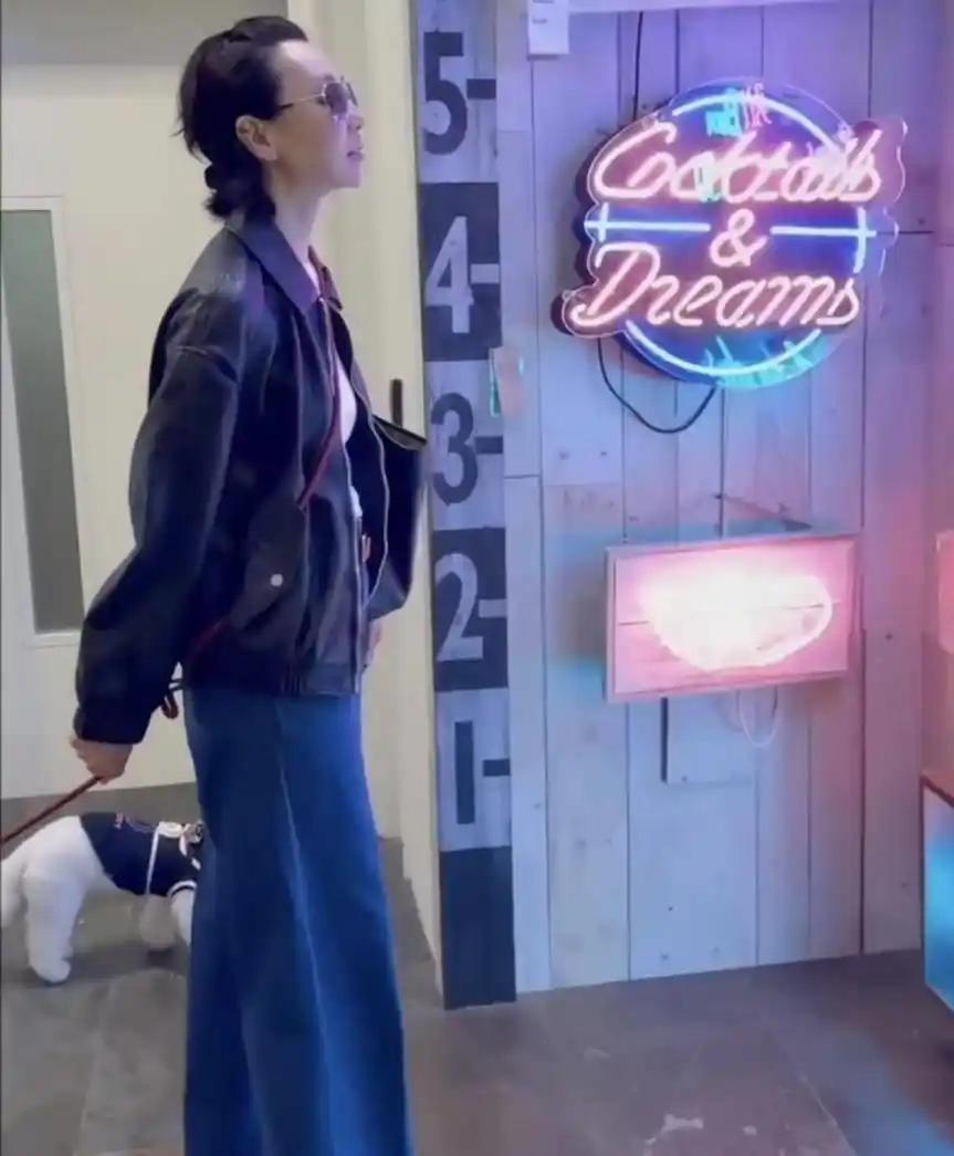 张曼玉61岁素颜照曝光!穿皮衣时髦似少女,完全看不出61岁的年纪,AI测龄竟差20岁