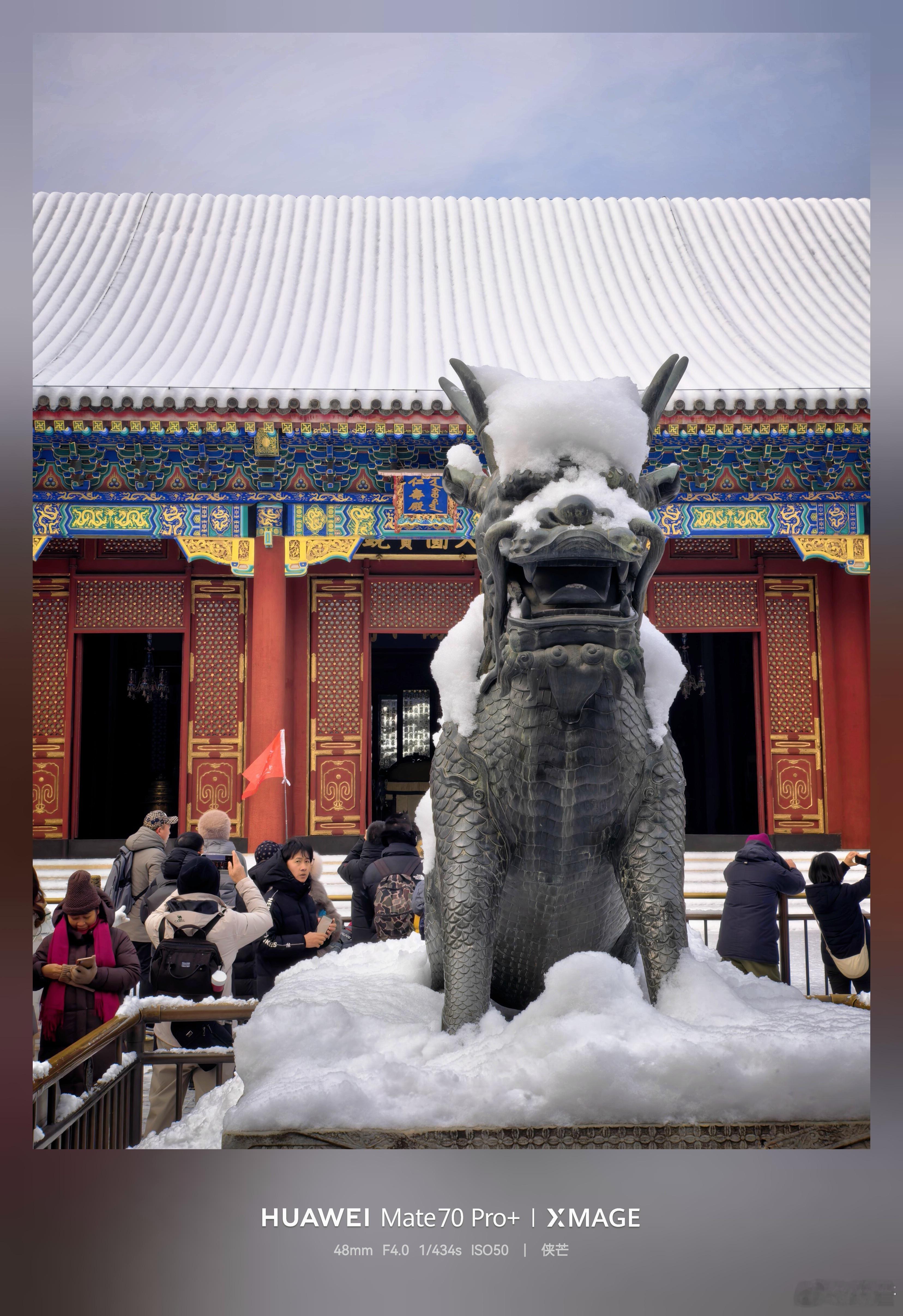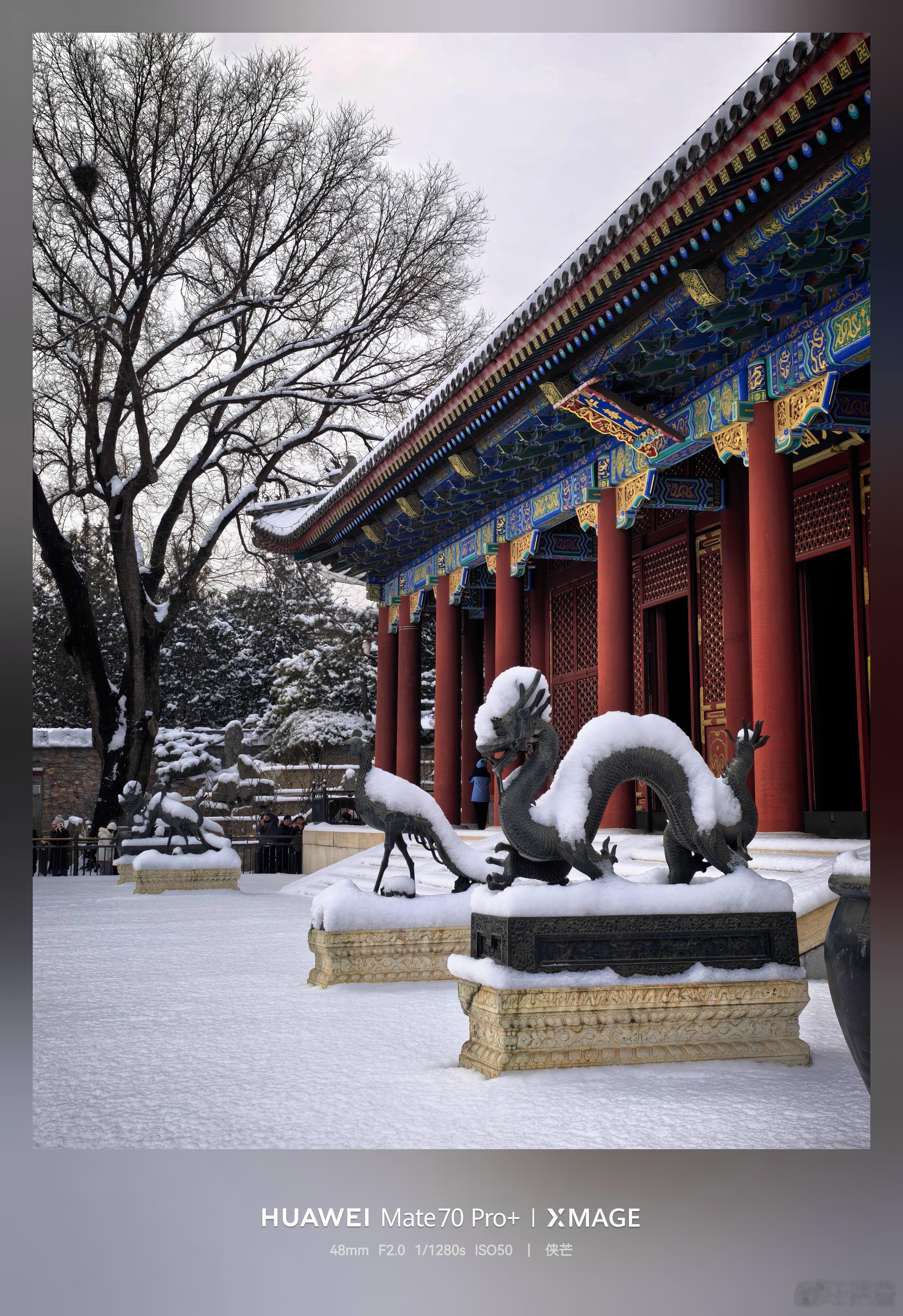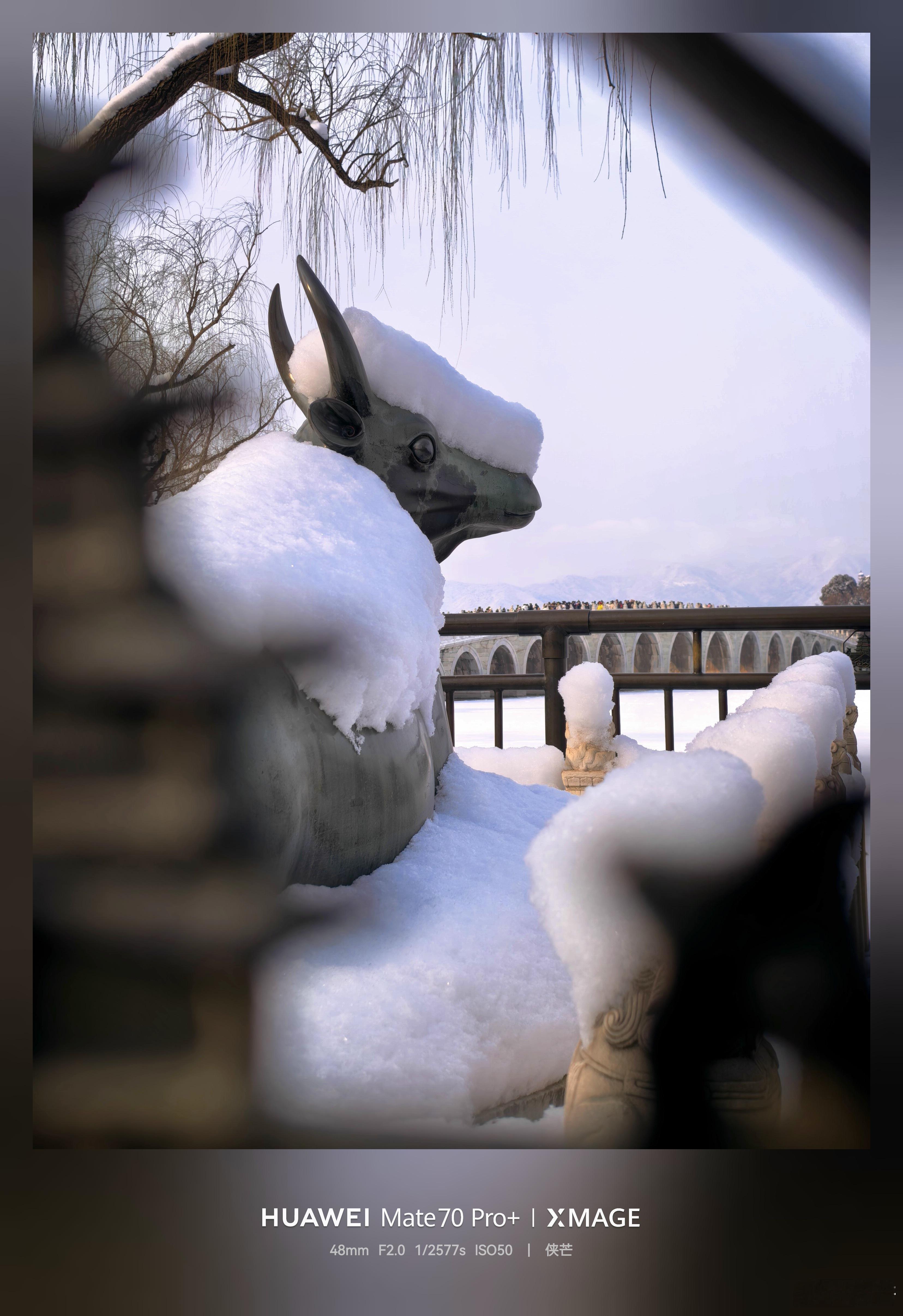一夜初雪,颐和园银装素裹,铜兽披银装。摄影