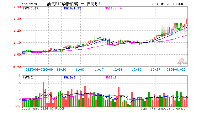 1月22日,截止午间收盘,油气ETF华泰柏瑞(561570)涨2.63%,报1.286元,成交额291.58万元。油气ETF华泰柏瑞(561570)重仓股方面,中国海油截止午盘涨4.48%,中国石油涨1.30%,中国石化涨3.36%,杰瑞股份跌0.20%,招商轮船涨0.18%,广汇能源涨1.75%,中远海能涨0.62%,恒力石化跌0.04%,荣盛石化涨1.23%,洲际油气涨10.10%。