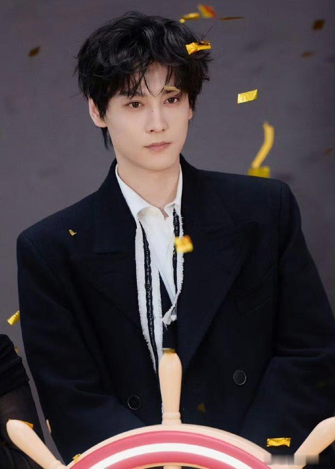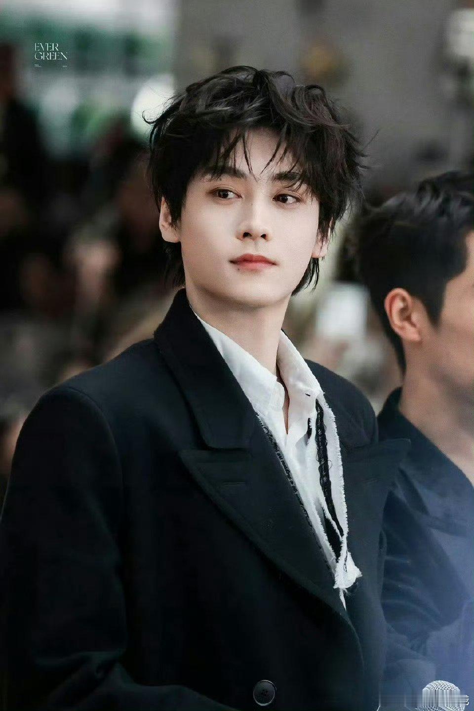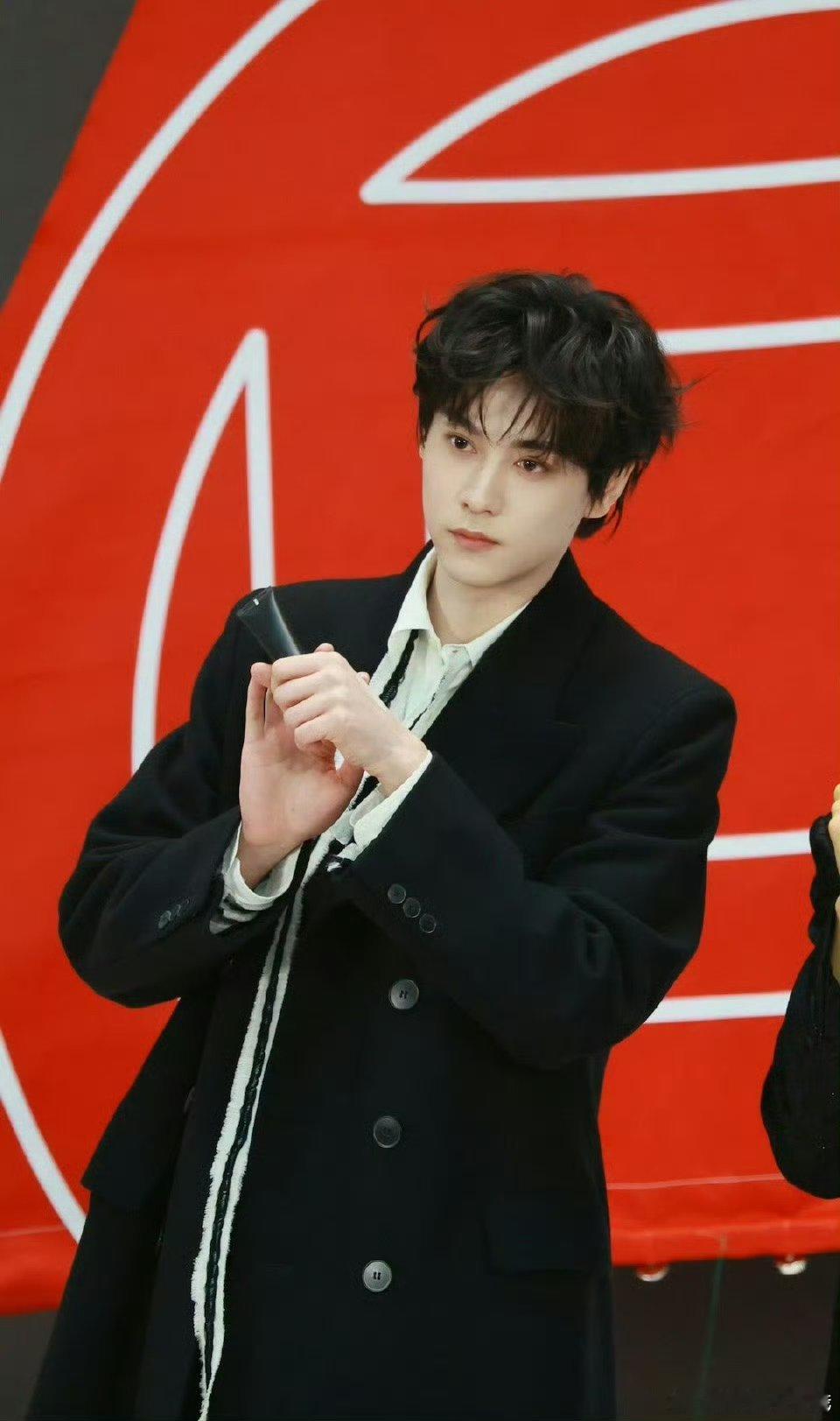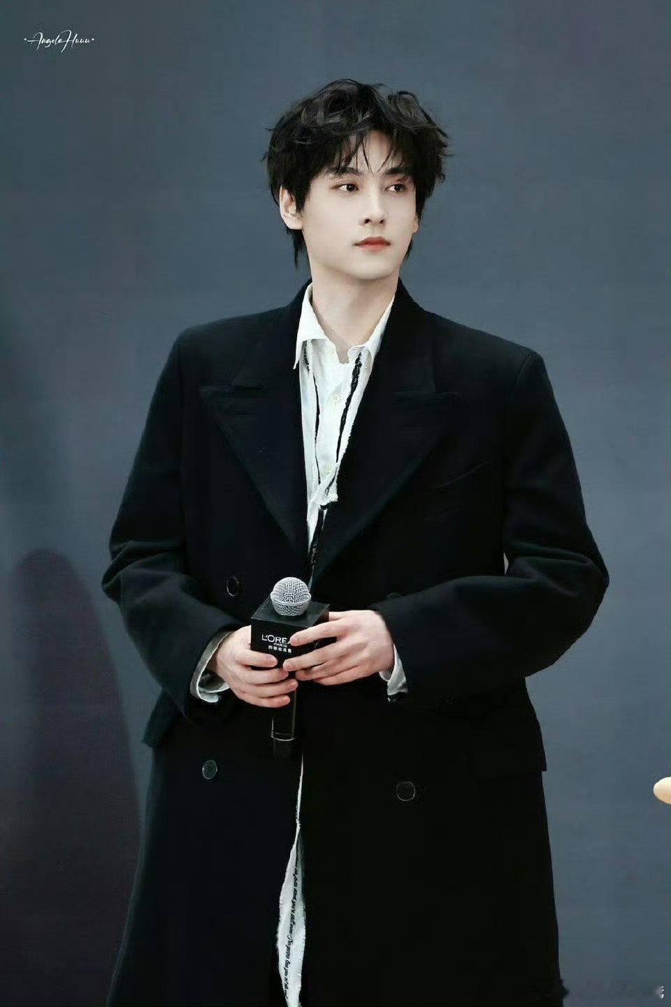 田栩宁卷毛黑色大衣造型男模级别的